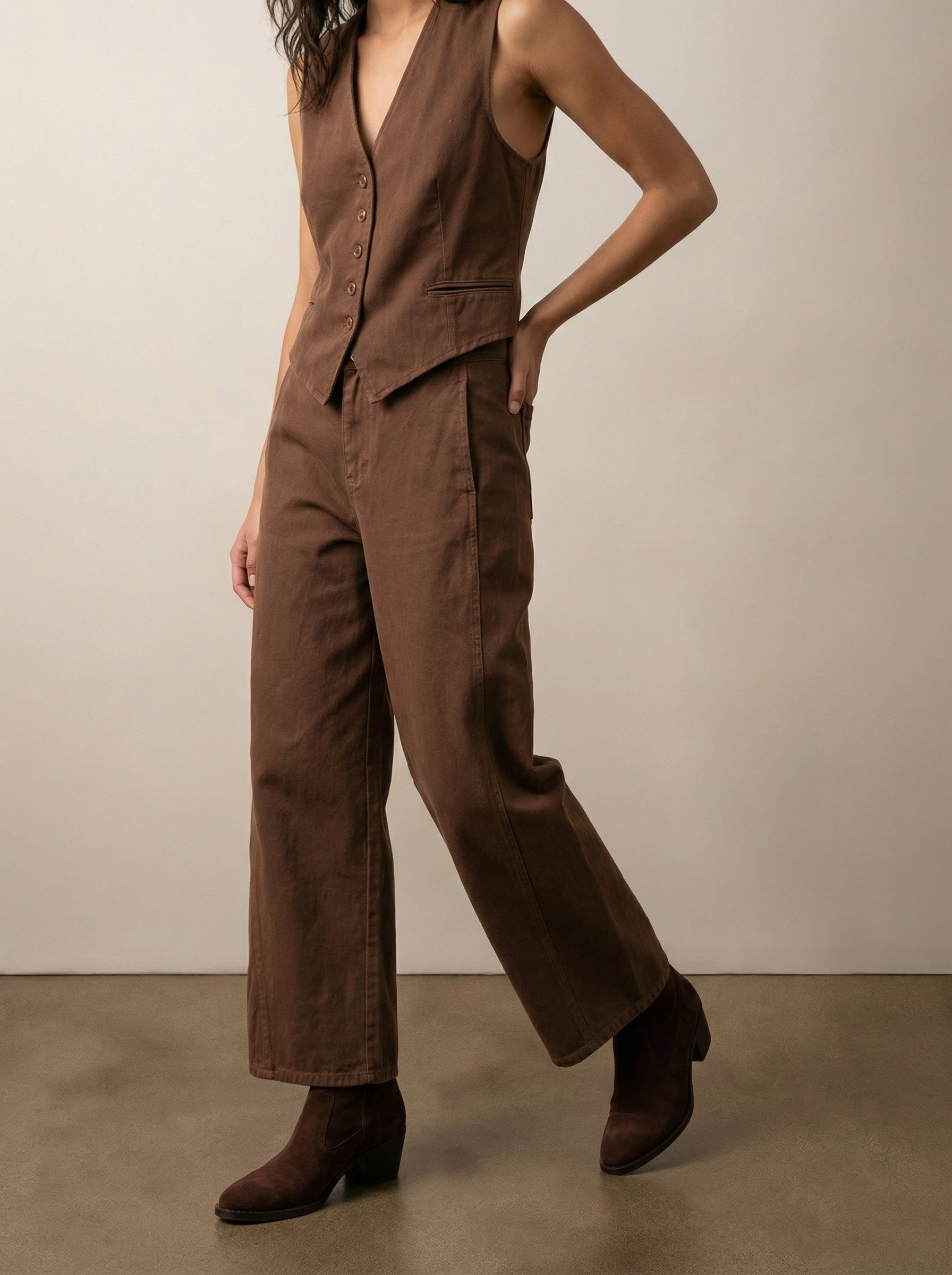 מכנסיים בגזרת רגל ישרה עם פרשנות אלגנטית לגזרה קלאסית. מותן מובנית, חמישה כיסים ותפרים מדויקים יוצרים מראה מחמיא ונוח לאורך היום. הגזרה הרפויה מעניקה תחושה מודרנית ולא מתאמצת. פריט ורסטילי שקל לשלב בלוק יומיומי או מוקפד. מומלץ לשלב עם הווסט התואם לסט מלא ומרשים.