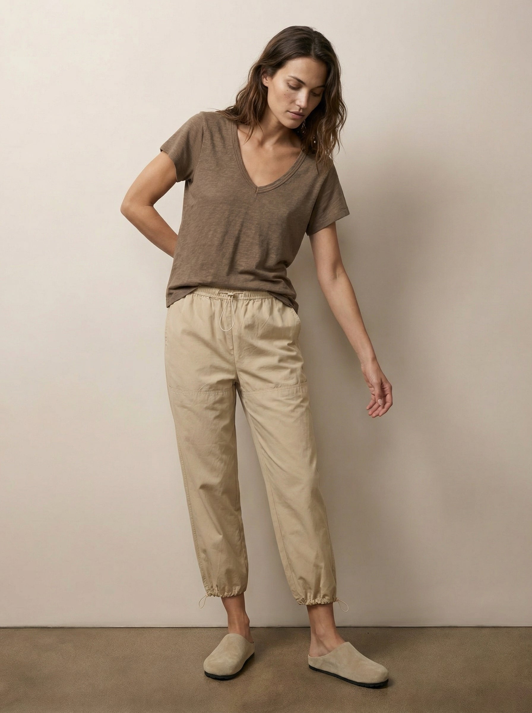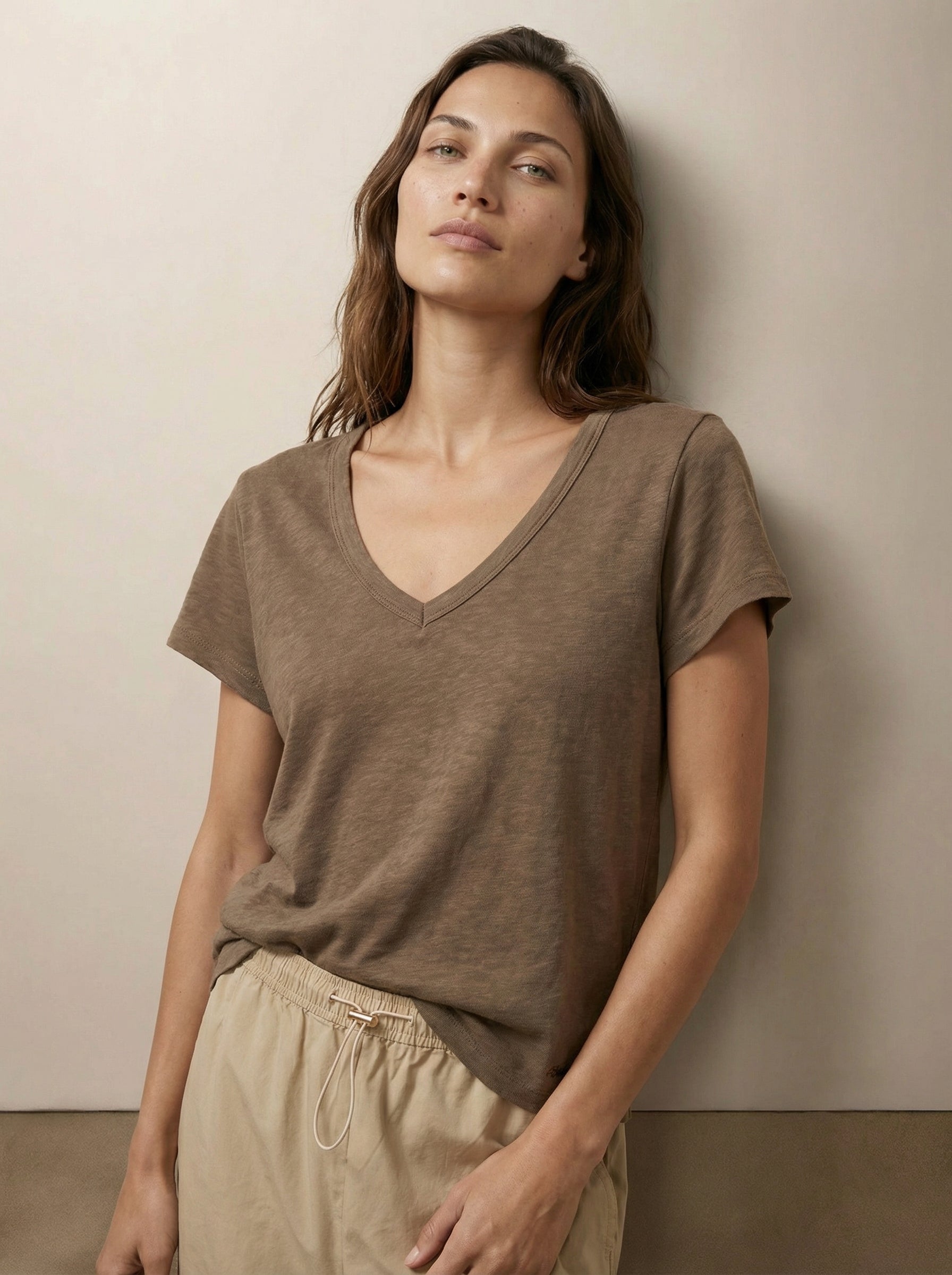 טי שירט קלאסית עם מחשוף וי מבד ג’רזי רך ונושם, פריט בסיס יומיומי ונוח במיוחד. גזרה נינוחה, שרוולים קצרים נקיים ומראה מחמיא וקליל. קלת משקל ורב־שימושית, מתאימה לשכבות או ללבישה בפני עצמה. משתלבת בקלות עם ג’ינס, מכנסיים מחויטים או חצאיות. זמינה בלבן מלא, סנד, שחור, אגוז והאנטר לסטיילינג מגוון וקל.