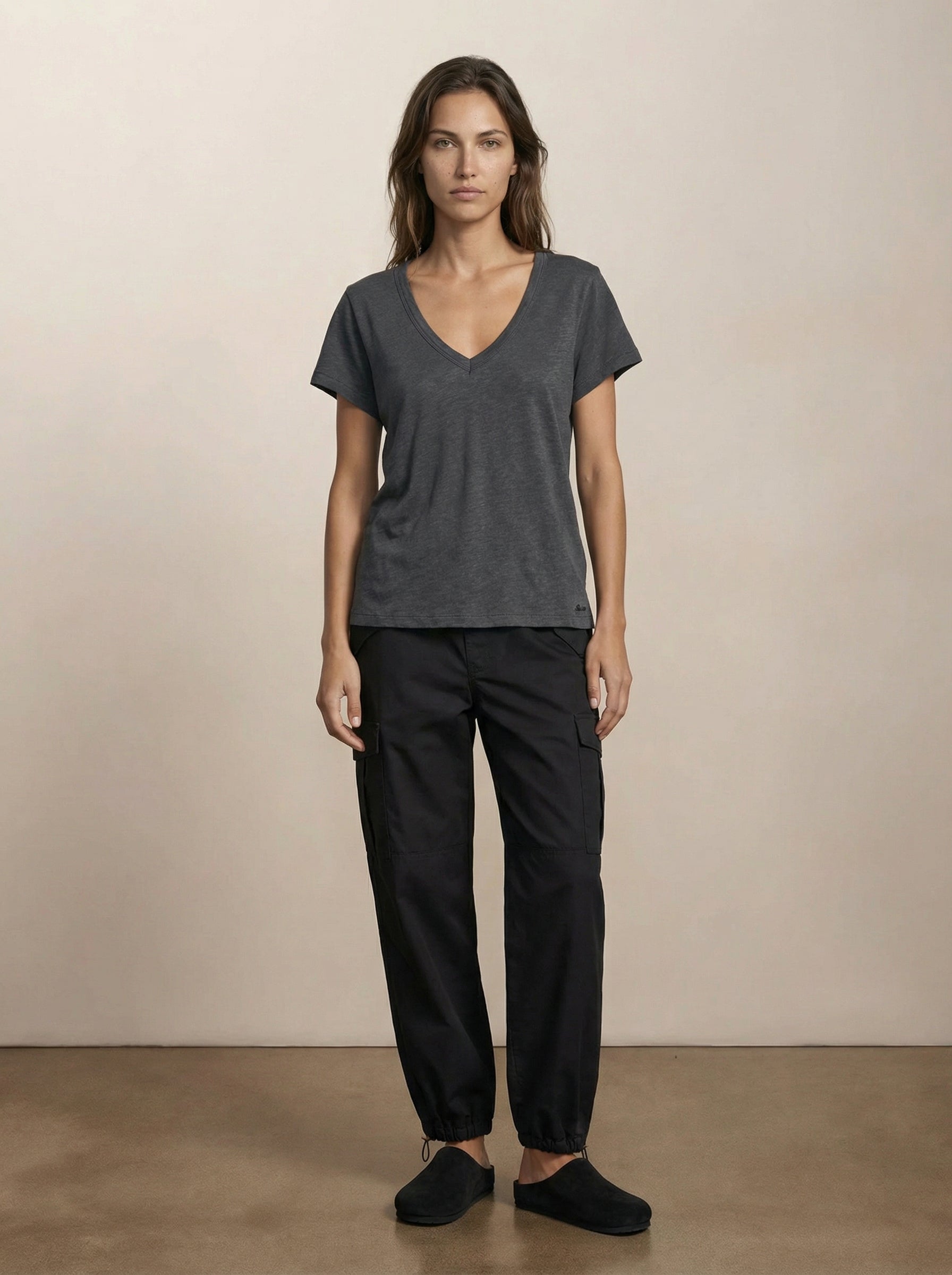 טי שירט קלאסית עם מחשוף וי מבד ג’רזי רך ונושם, פריט בסיס יומיומי ונוח במיוחד. גזרה נינוחה, שרוולים קצרים נקיים ומראה מחמיא וקליל. קלת משקל ורב־שימושית, מתאימה לשכבות או ללבישה בפני עצמה. משתלבת בקלות עם ג’ינס, מכנסיים מחויטים או חצאיות. זמינה בלבן מלא, סנד, שחור, אגוז והאנטר לסטיילינג מגוון וקל.