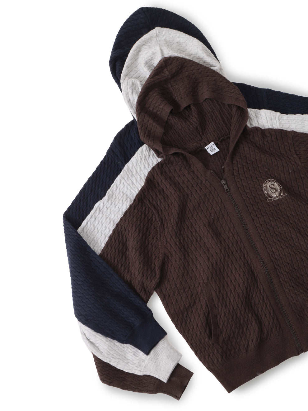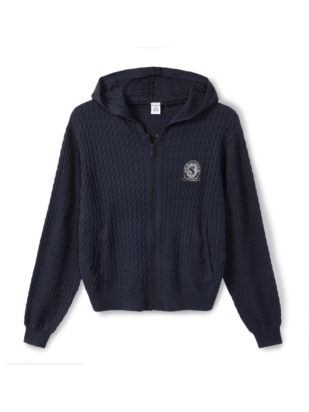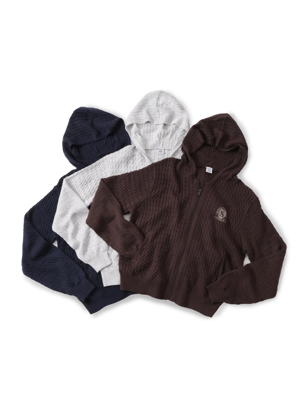 הקפוצ’ון הסרוג צמות מביא ווייב קולג' עם נגיעות לבוש רחוב אדג’י. עם לוגו סמל בולט, סגירת רוכסן קדמית נקייה וגימורי ריבד בנוחות – הוא משלב נוחות מקסימלית עם מראה מוקפד. הקפוצ’ון המובנה והכיסים האלכסוניים מוסיפים טאץ’ פרקטי וקריר בדיוק במקום הנכון. יש מכנסיים תואמים. מידות: XS–XL זמין ב-3 צבעים: חום, נייבי ולבן מלנג’.