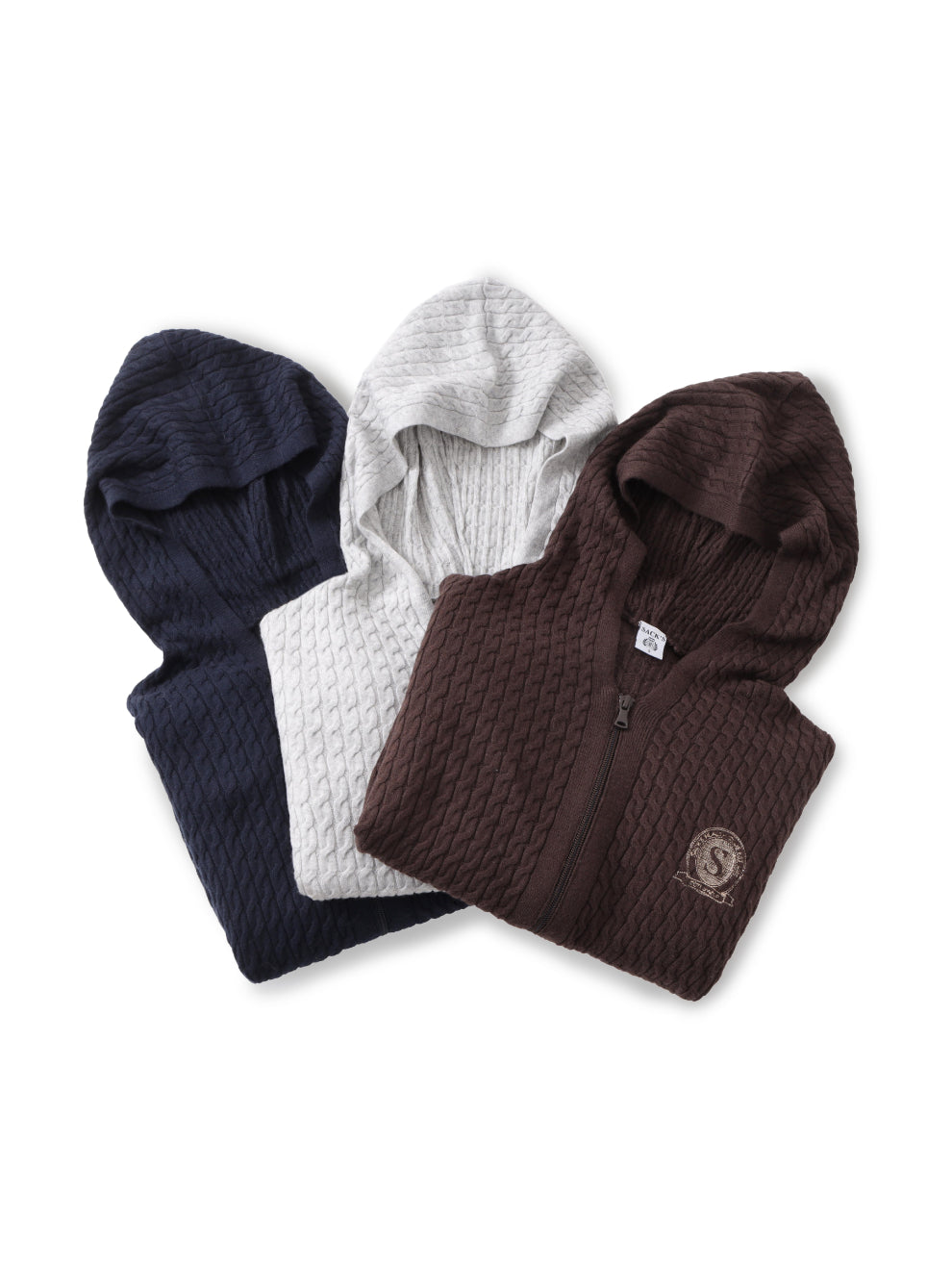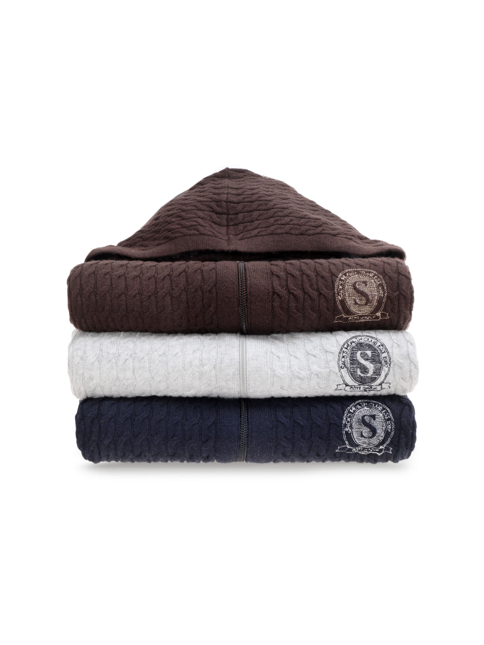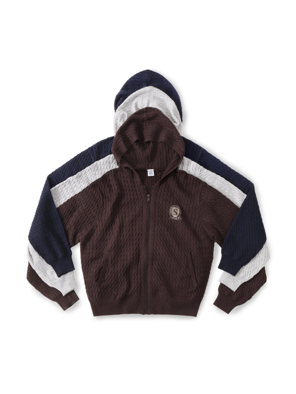 הקפוצ’ון הסרוג צמות מביא ווייב קולג' עם נגיעות לבוש רחוב אדג’י. עם לוגו סמל בולט, סגירת רוכסן קדמית נקייה וגימורי ריבד בנוחות – הוא משלב נוחות מקסימלית עם מראה מוקפד. הקפוצ’ון המובנה והכיסים האלכסוניים מוסיפים טאץ’ פרקטי וקריר בדיוק במקום הנכון. יש מכנסיים תואמים. מידות: XS–XL זמין ב-3 צבעים: חום, נייבי ולבן מלנג’.