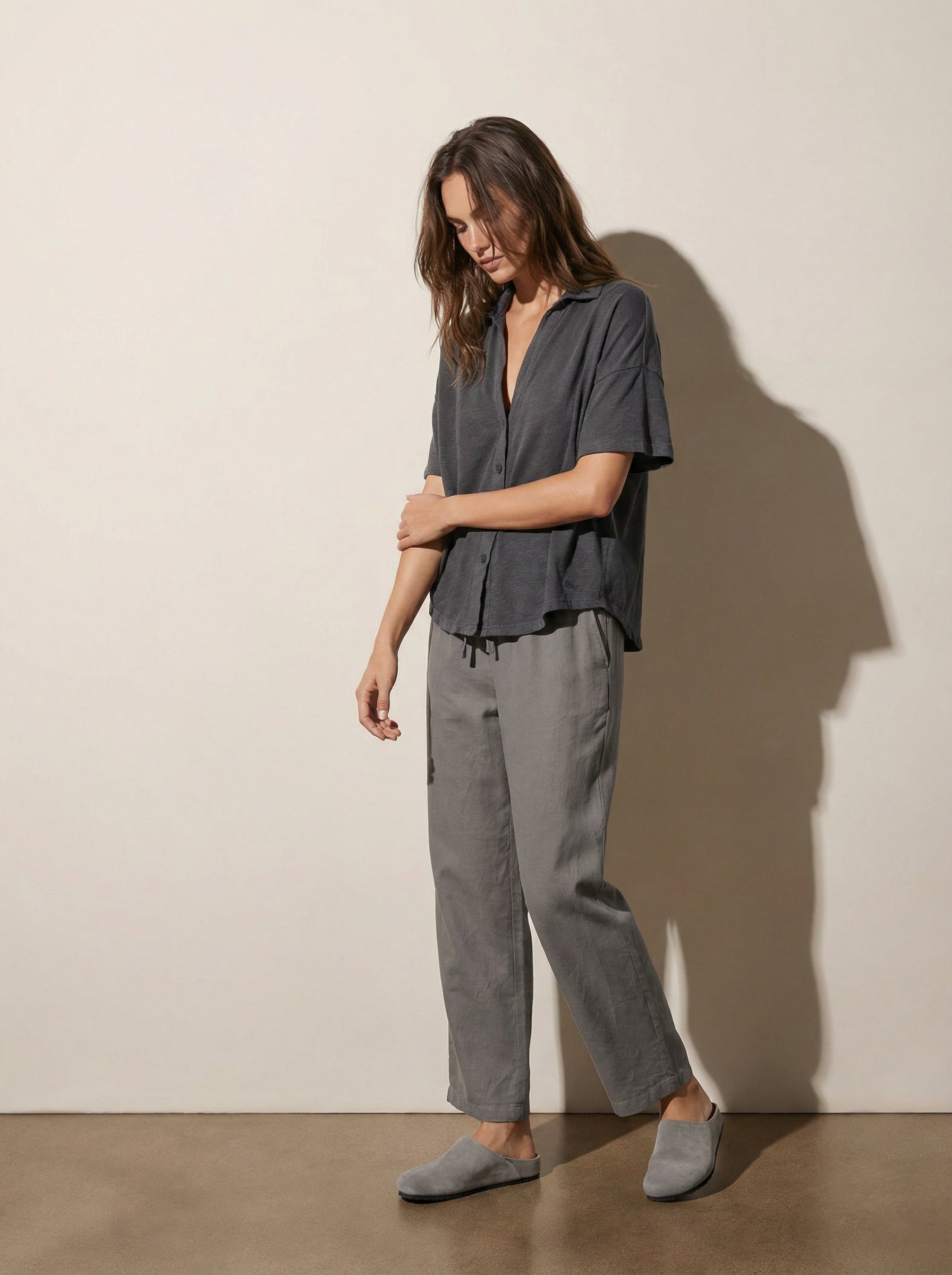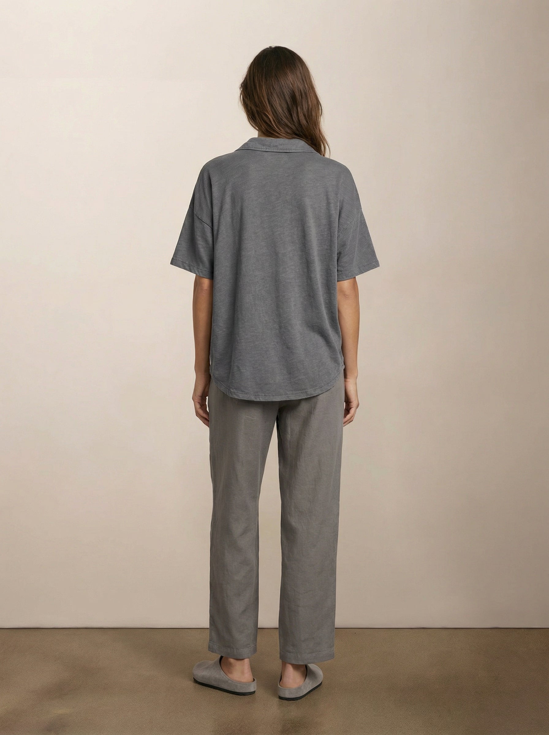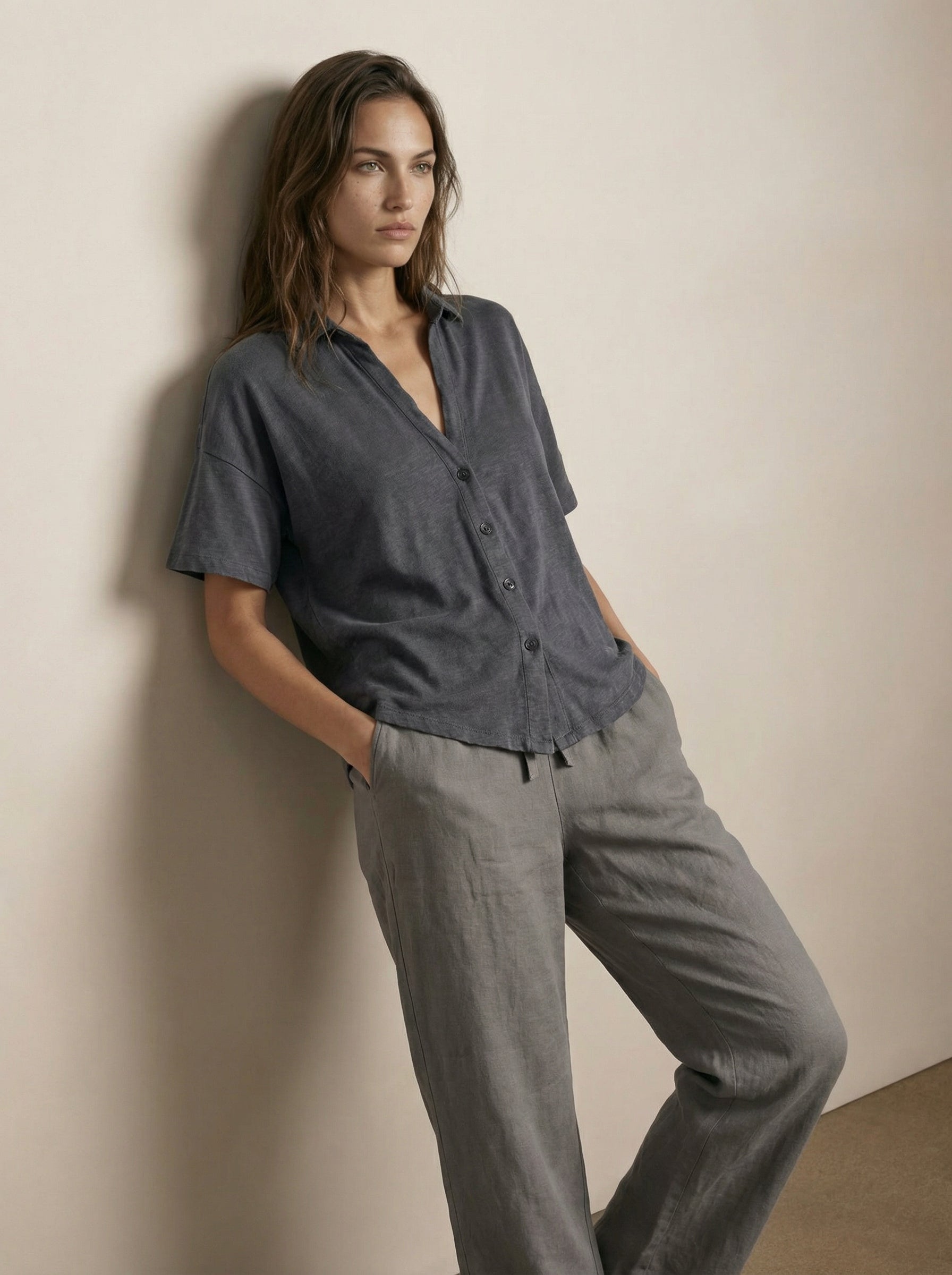 חולצת ג’רזי מכופתרת עם שרוולים קצרים, המשלבת מראה מוקפד עם תחושה נינוחה. כוללת צווארון קלאסי, סגירת כפתורים קדמית וגזרה מחמיאה ונוחה. בד קליל ונושם מאפשר לבישה לאורך כל היום תוך שמירה על מראה נקי ומסודר. משתלבת היטב עם ג’ינס, מכנסיים מחויטים או חצאיות. זמינה בלבן מלא, האנטר, שחור, סנד ואגוז.