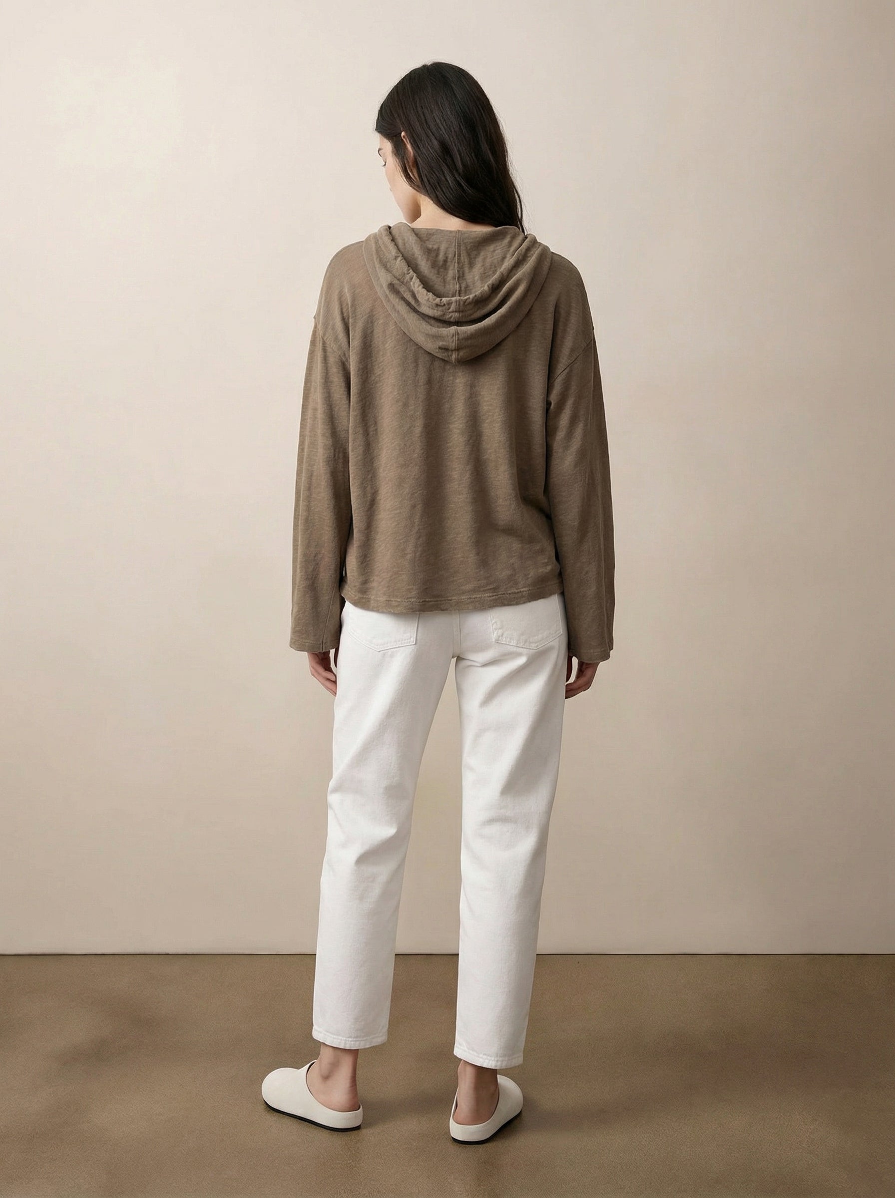 חולצת קפוצ’ון קצרה מבד ג’רזי רך, פריט יומיומי עם מראה מודרני ולא מתאמץ. גזרה רפויה, קפוצ’ון עם שרוך מתכוונן ושרוולים רחבים יוצרים סילואט עכשווי ונוח. קלת משקל, מתאימה לשכבות או ללבישה בפני עצמה. משתלבת בקלות עם מכנסיים או חצאיות בגזרה גבוהה או עם פריטים תואמים. זמינה בלבן מלא, אגוז ושחור.