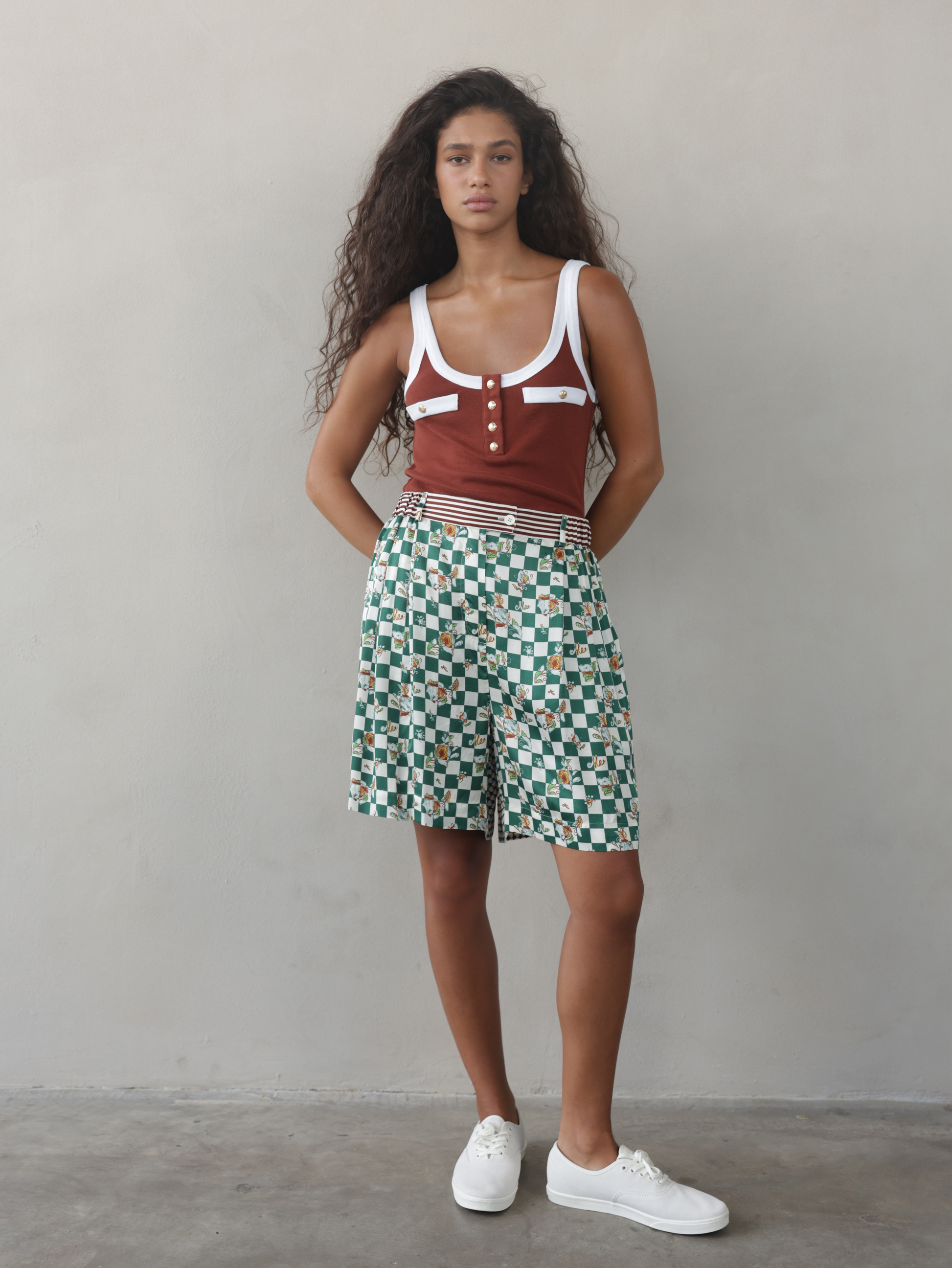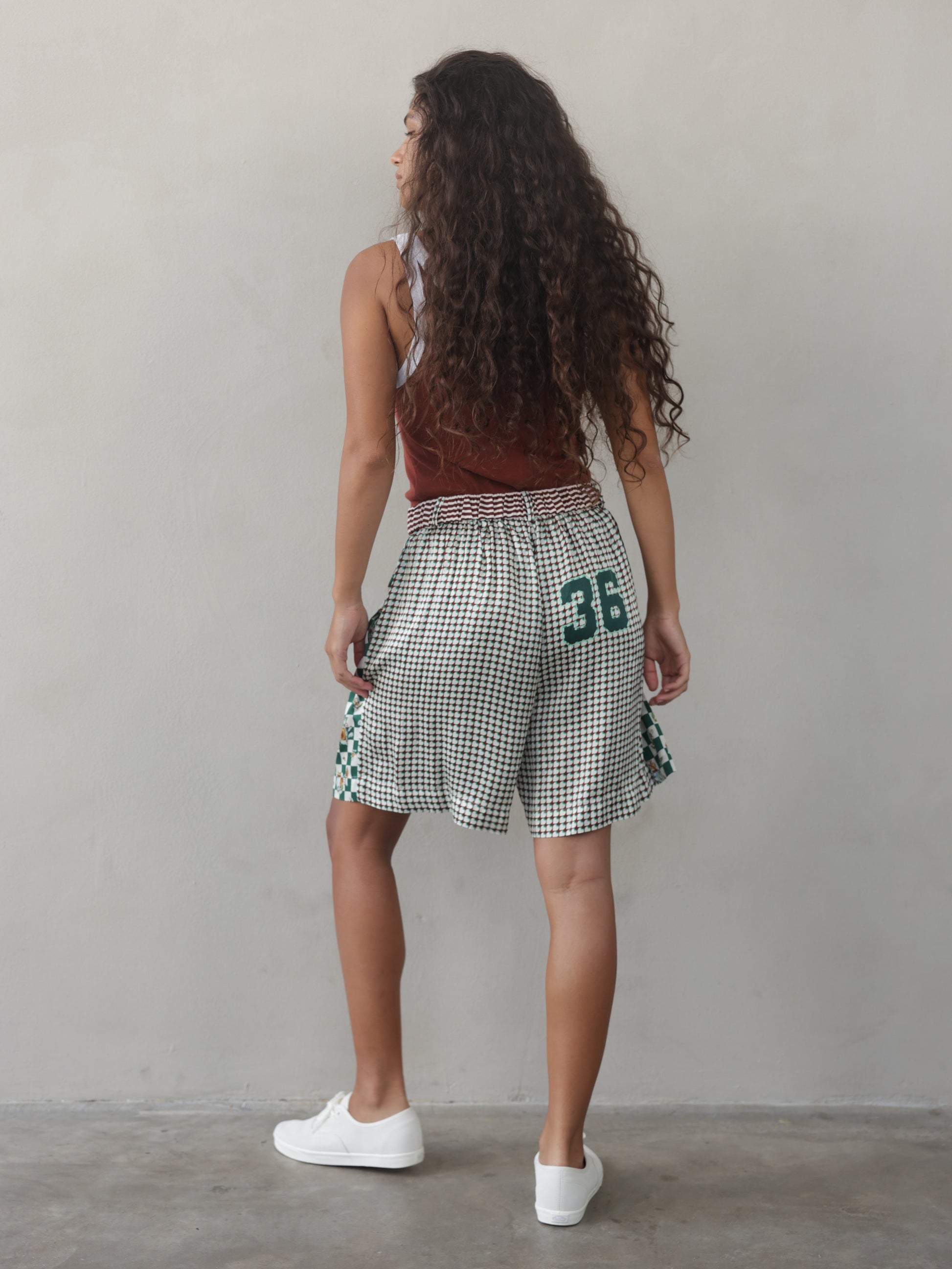 מכנס קצר עם מותן אלסטית ופליטות, חמישה חוליות חגורה ושני כיסים צדדיים. בדוגמת ספורטי ג'ייד, זמין במידות XS, S, M, L ו-XL. שלבי עם הטי-שירט, הטנק או הקמיסול האהובים עלייך למראה יומיומי נוח במיוחד.