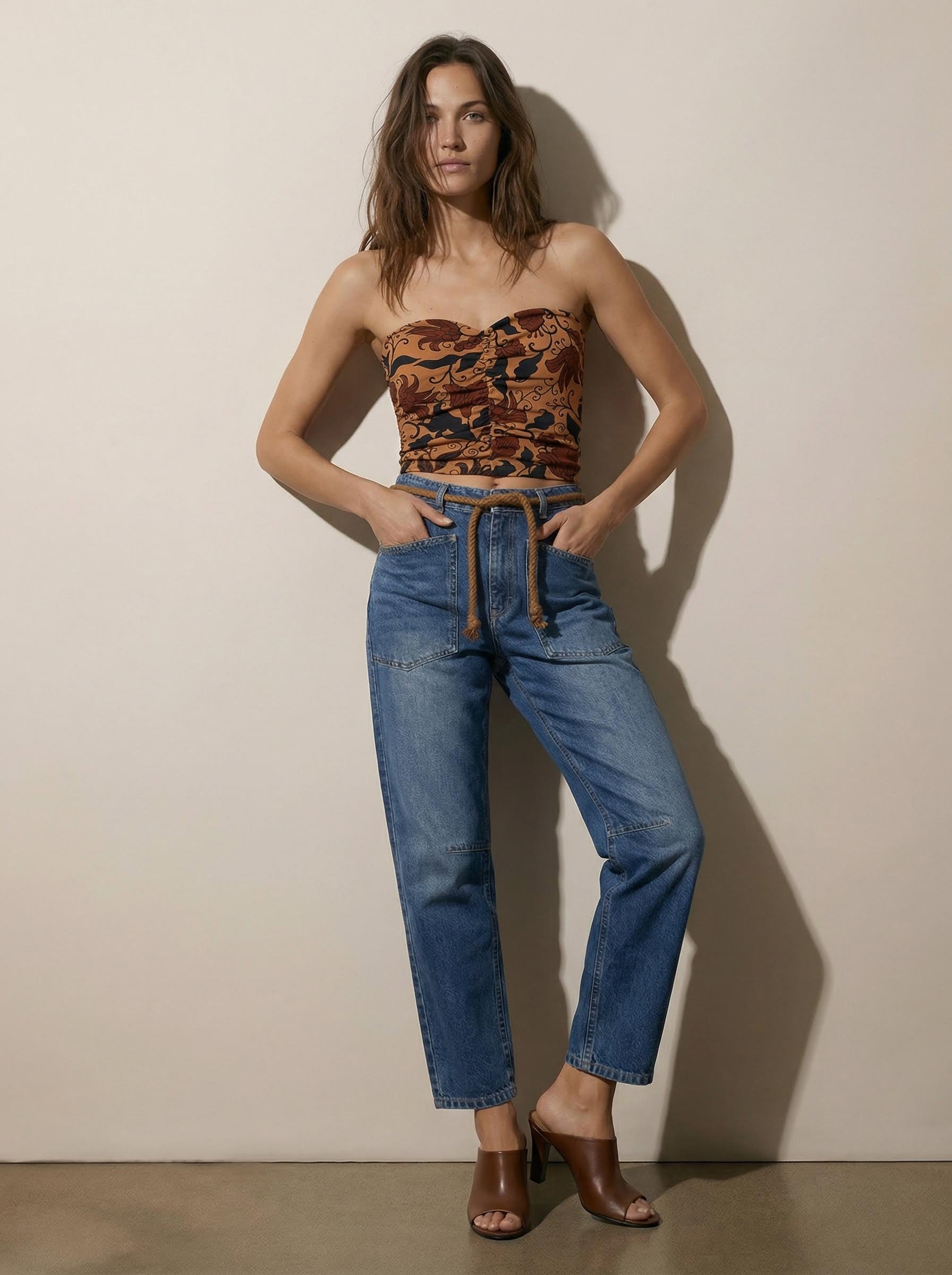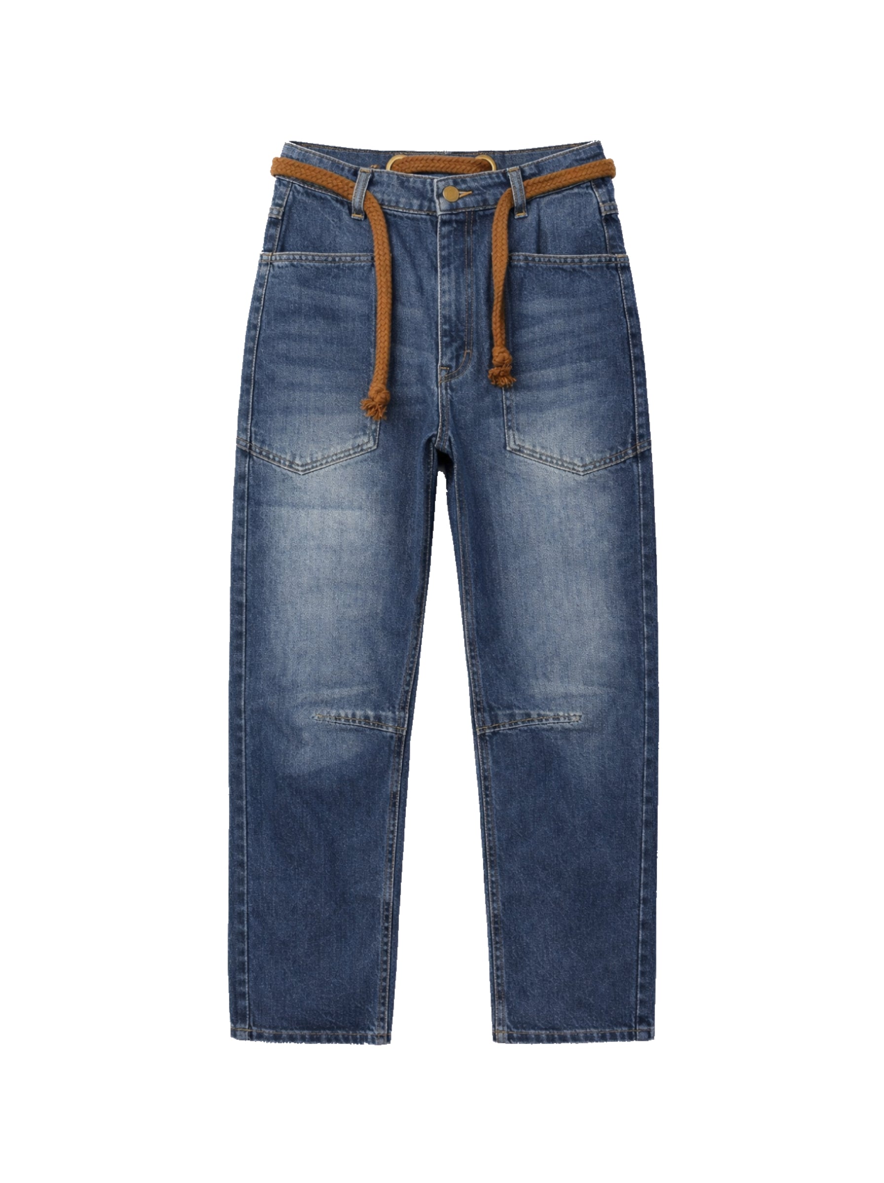 מכנסי דנים בגזרה רחבה ובמראה דהוי. שרוך קשירה במותן, חמש לולאות לחגורה ושני כיסים קדמיים. זמינים בדנים או שחור במידות XS–XL. מומלץ לשלב עם טי-שירט או גופייה אהובה למראה יומיומי קליל.