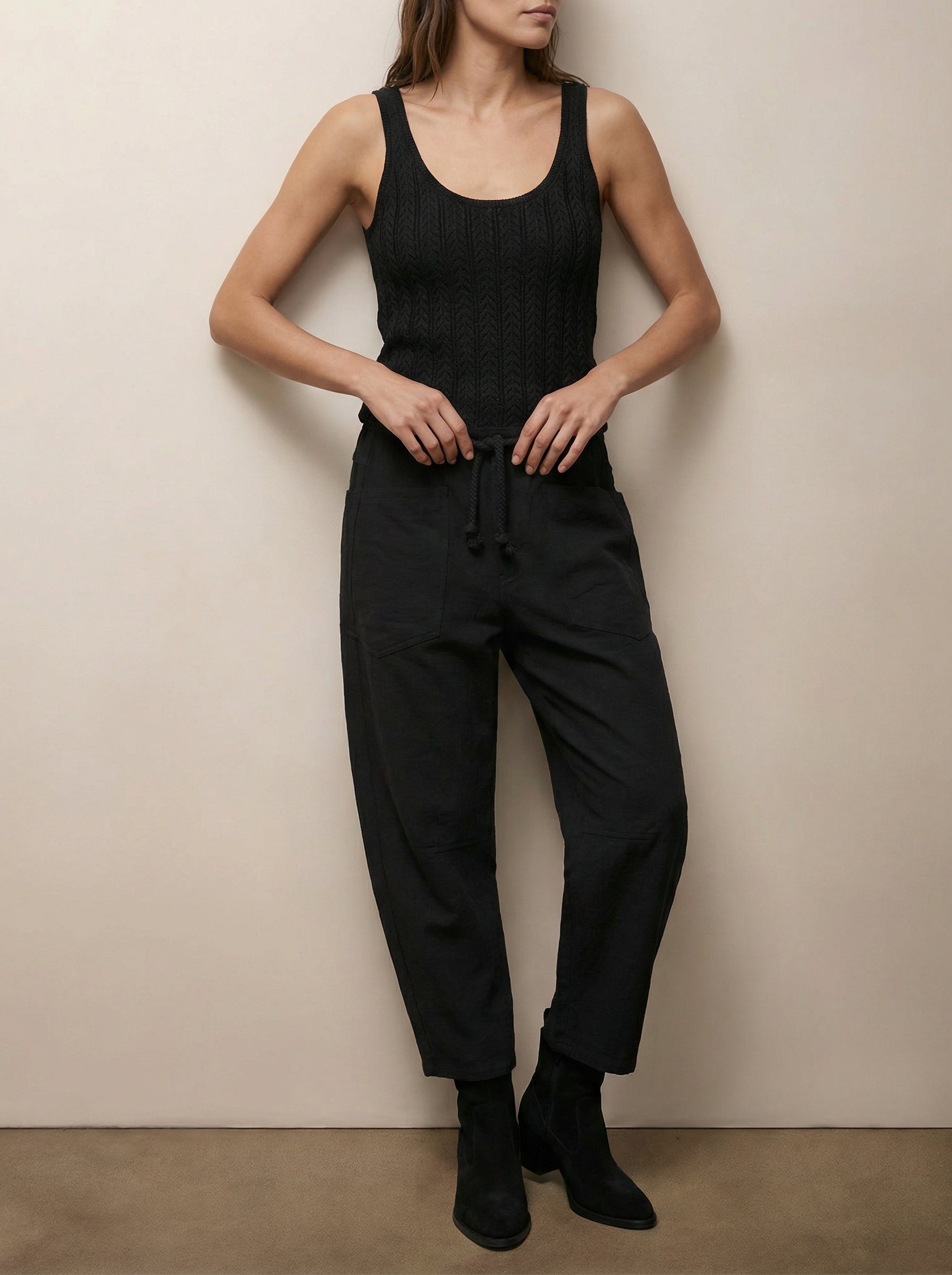 גופיית סריג קלאסית ללא שרוולים, פריט בסיס על־זמני לארון היומיומי. כוללת מחשוף עגול נקי וגזרה רפויה ומחמיאה, לנוחות מירבית ולורסטיליות בשכבות או בלבישה בפני עצמה. הבד הרך והנושם מתאים לסטיילינג לאורך כל היום. עיצוב פשוט ומוקפד המשתלב בקלות עם ג’ינס, חצאיות או מכנסיים מחויטים. זמינה בצבעים נטורל, שחור וחום ליצירת שילובים מגוונים.