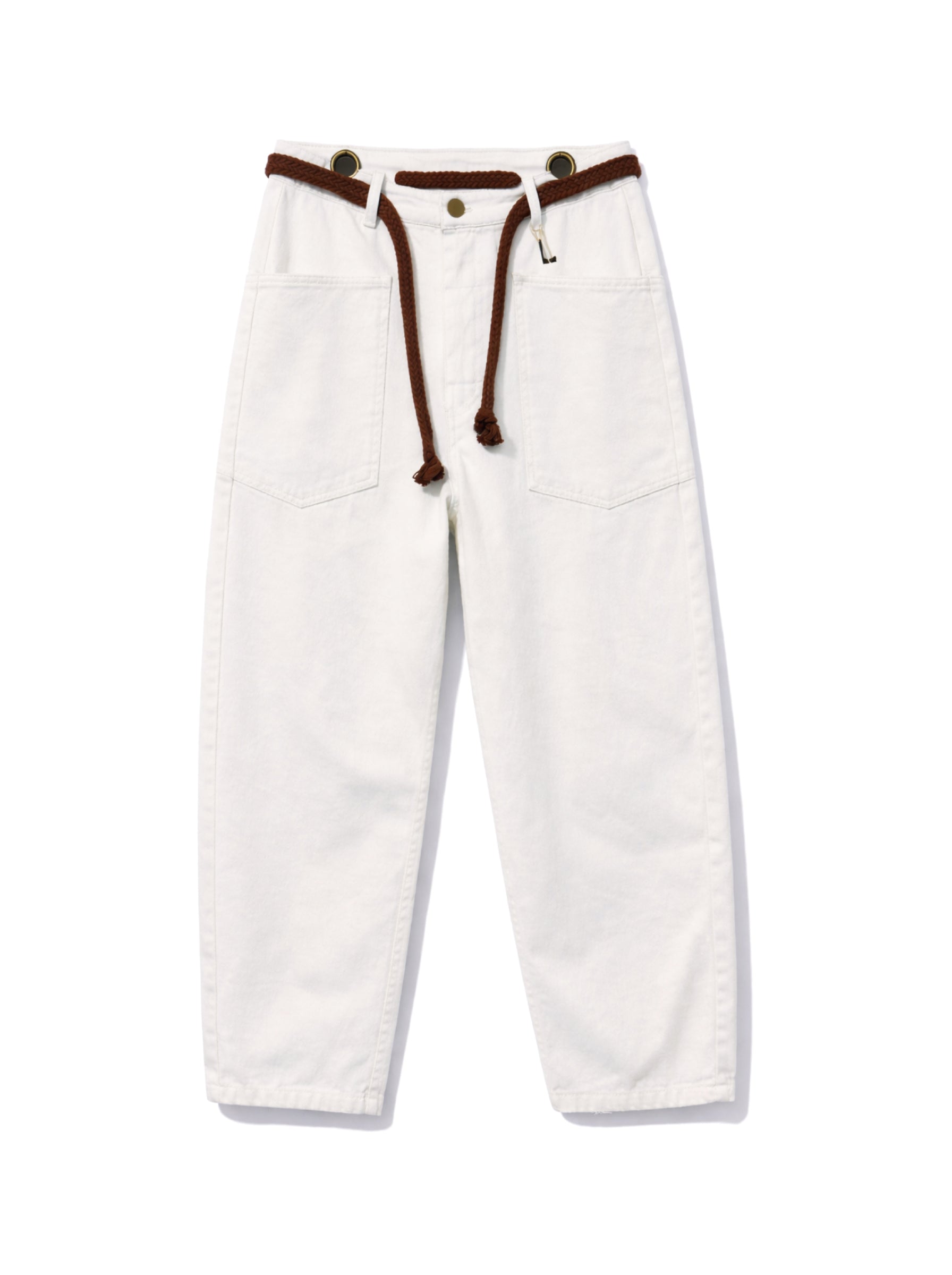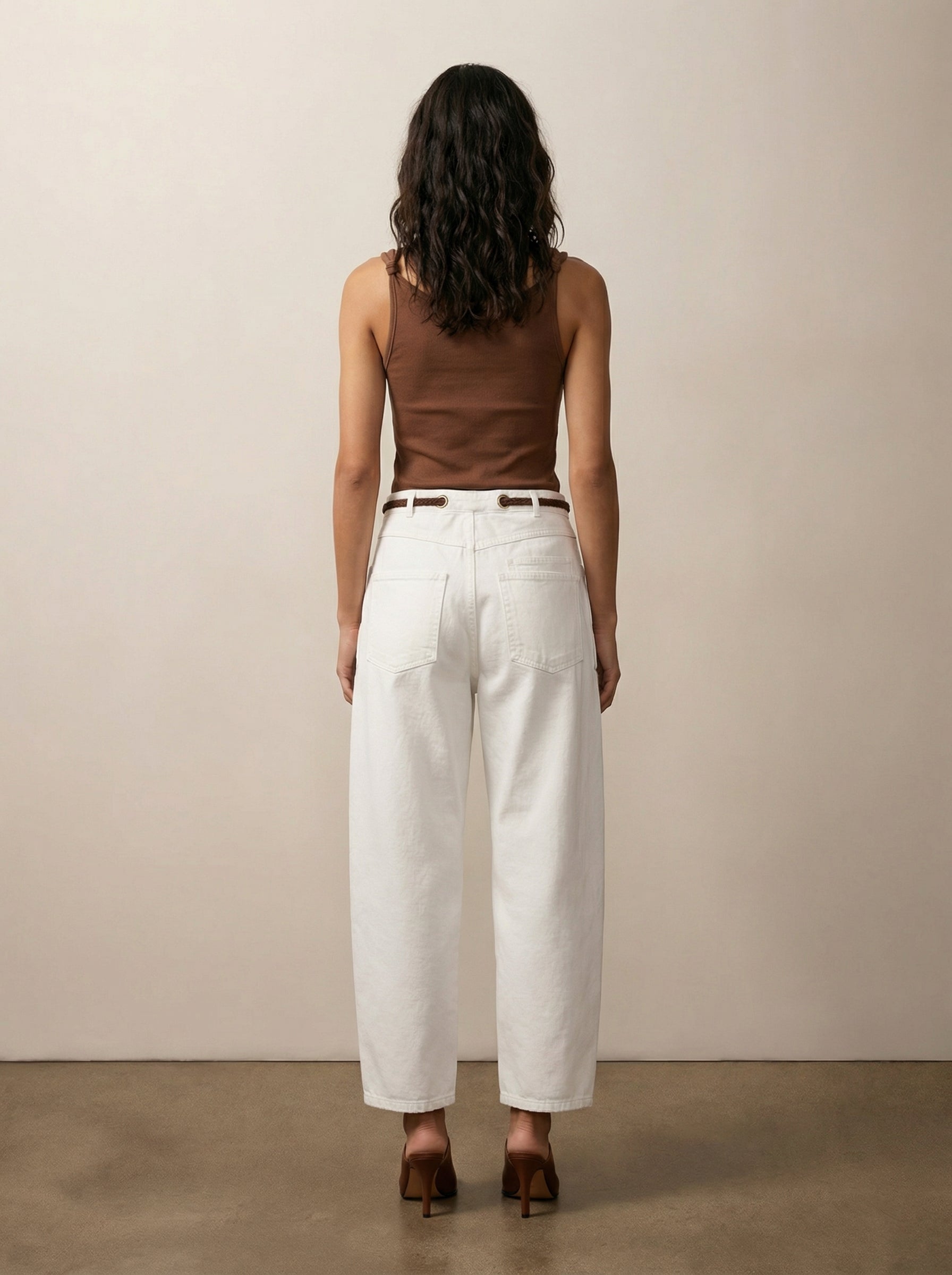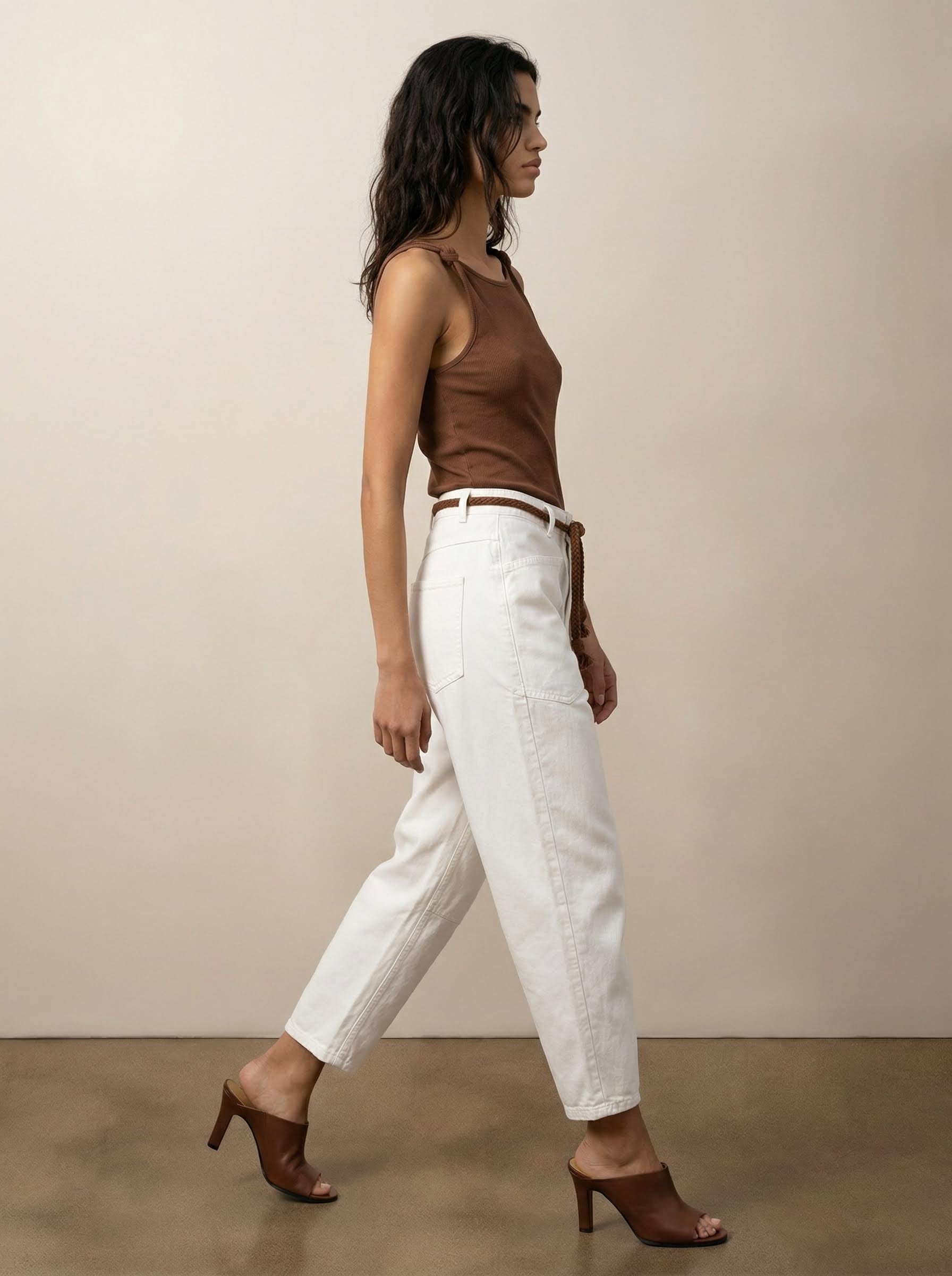 מכנסיים בגזרה ברל עם שרוך קשירה ומראה יוטיליטי אלגנטי. מותן מתכווננת, כיסים פונקציונליים ותפרים מודגשים. מתאימים ליום ולערב. זמינים בנטורל עם חגורה חומה, לבן עם חגורה חומה ושחור עם חגורה שחורה.