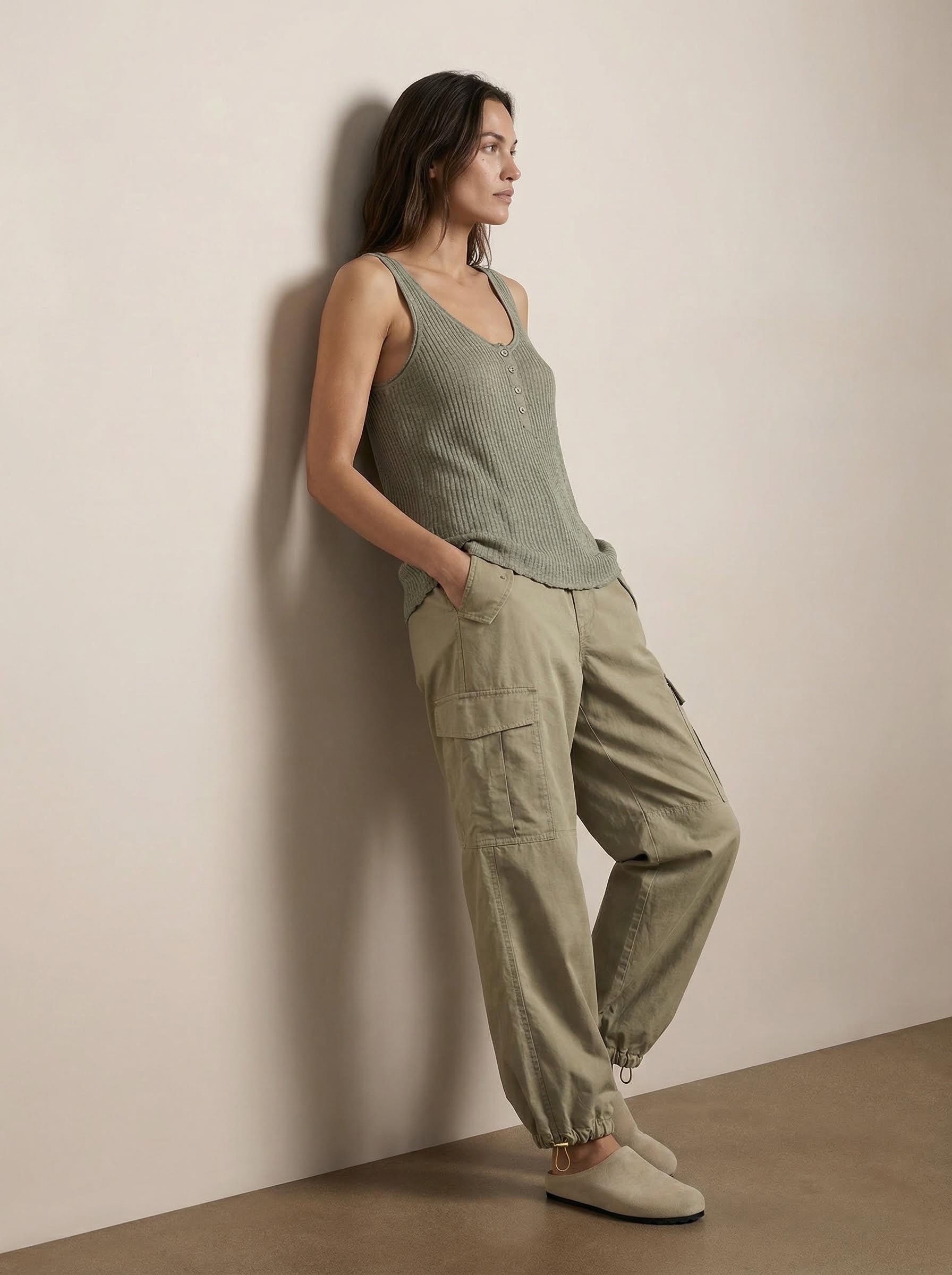 גופיית סריג ריב מתערובת פשתן, קלה ונושמת עם טקסטורה טבעית. כוללת מחשוף עגול מחמיא ופרט כפתורים עדין בחזית, ליצירת סילואט רפויה ונשית. מתאימה ללבישה בפני עצמה או בשכבות מתחת לז’קטים וסריגים. פריט ורסטילי שמתאים ממראה יומיומי ועד קז’ואל משודרג. זמינה בלבן מלא, שחור מלא ו־האנטר.
