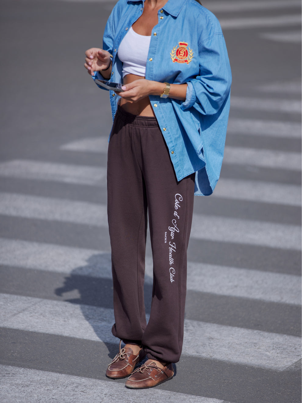 המכנסיים האלה משלבים קוליות טבעית עם טאץ’ ספורטיבי מדויק. הם כוללים הדפס רגל צדדי עם הכיתוב “Club of Super Health Club”, כיס אחורי, וגימורי גומי נוחים בקרסוליים. זמינים בצבעים: חום, נייבי ואפור מלנג’. יש קפוצ’ון תואם. מידות: XXS–XL איך ללבוש? לסט מושלם: שלבי עם הקפוצ’ון התואם. או לסטייל נפרד: עם גופייה צמודה, בלייזר אוברסייז וסניקרס גסות. בין אם את בדרך לבראנץ’ או פשוט בווייב של בית – הג’וגרים האלה מביאים גם את ה־Cozy, וגם את ה־Cool