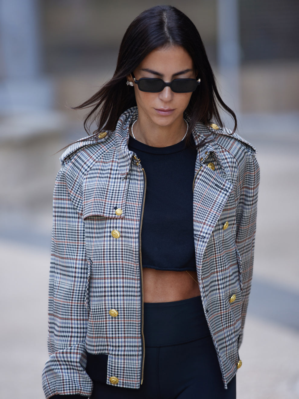 הז’קט הזה הוא שילוב מושלם של קלאסיקת משבצות עם שיק צבאי מודרני. עם כפתורי כתפיים בולטים, כיסי פאץ’ אלכסוניים וסיומות ריבד במכפלת ובשרוולים, הוא מציע מראה מובנה ומדויק בעיטור משבצות חום קלאסי – כמו בלשית וינטג’ שפגשה את המסלול. איך ללבוש? למראה רטרו-מודרני: שלבי מעל חולת גולף ומכנסיים אלגנטיים. לווייב מרדן ביומיום: עם ג’ינס קרוע, טי-שירט פשוטה ומגפי קומבט. ולמי שאוהבת דרמה – הוסיפי שפתון אדום וכובע ברה.