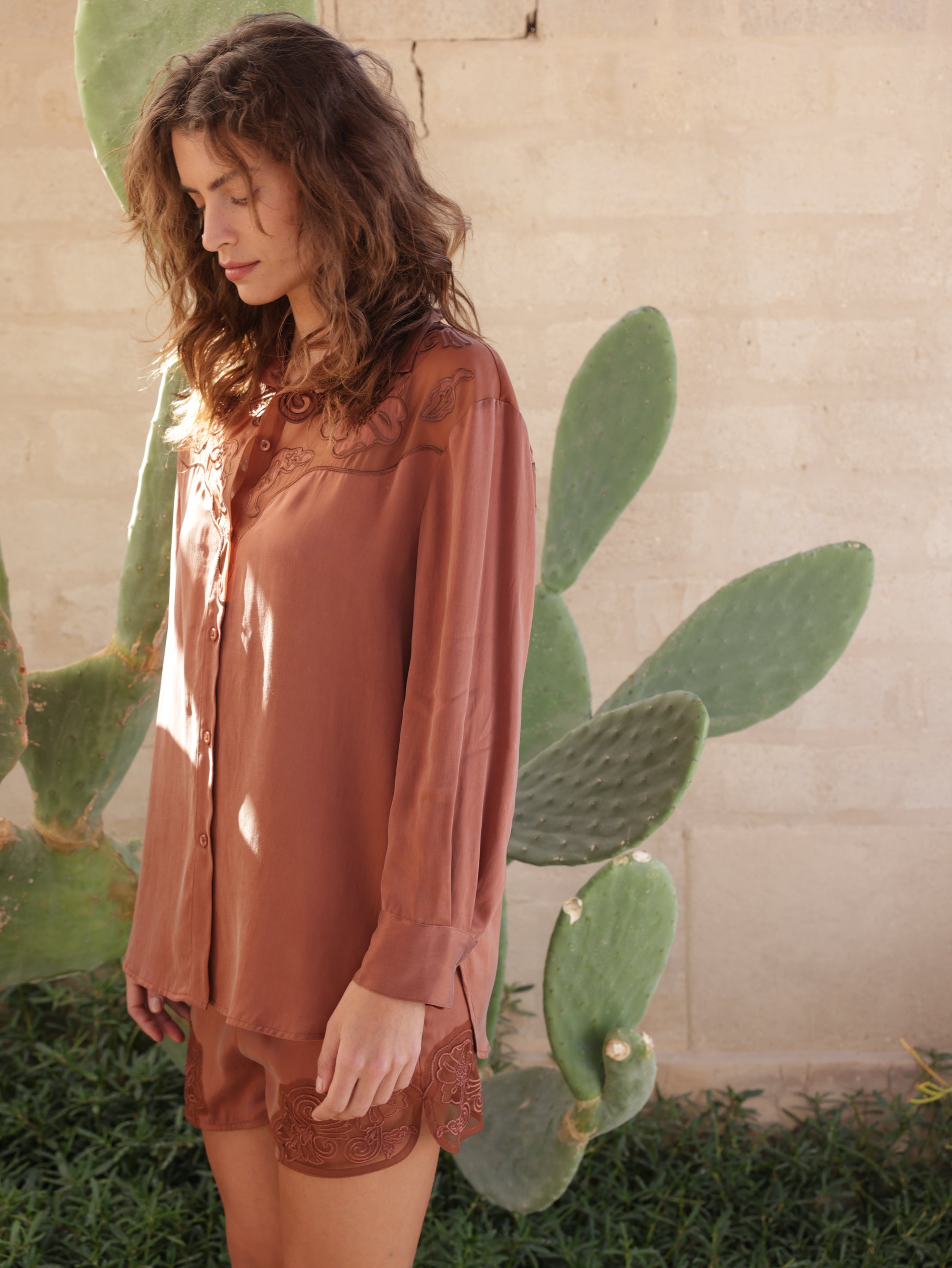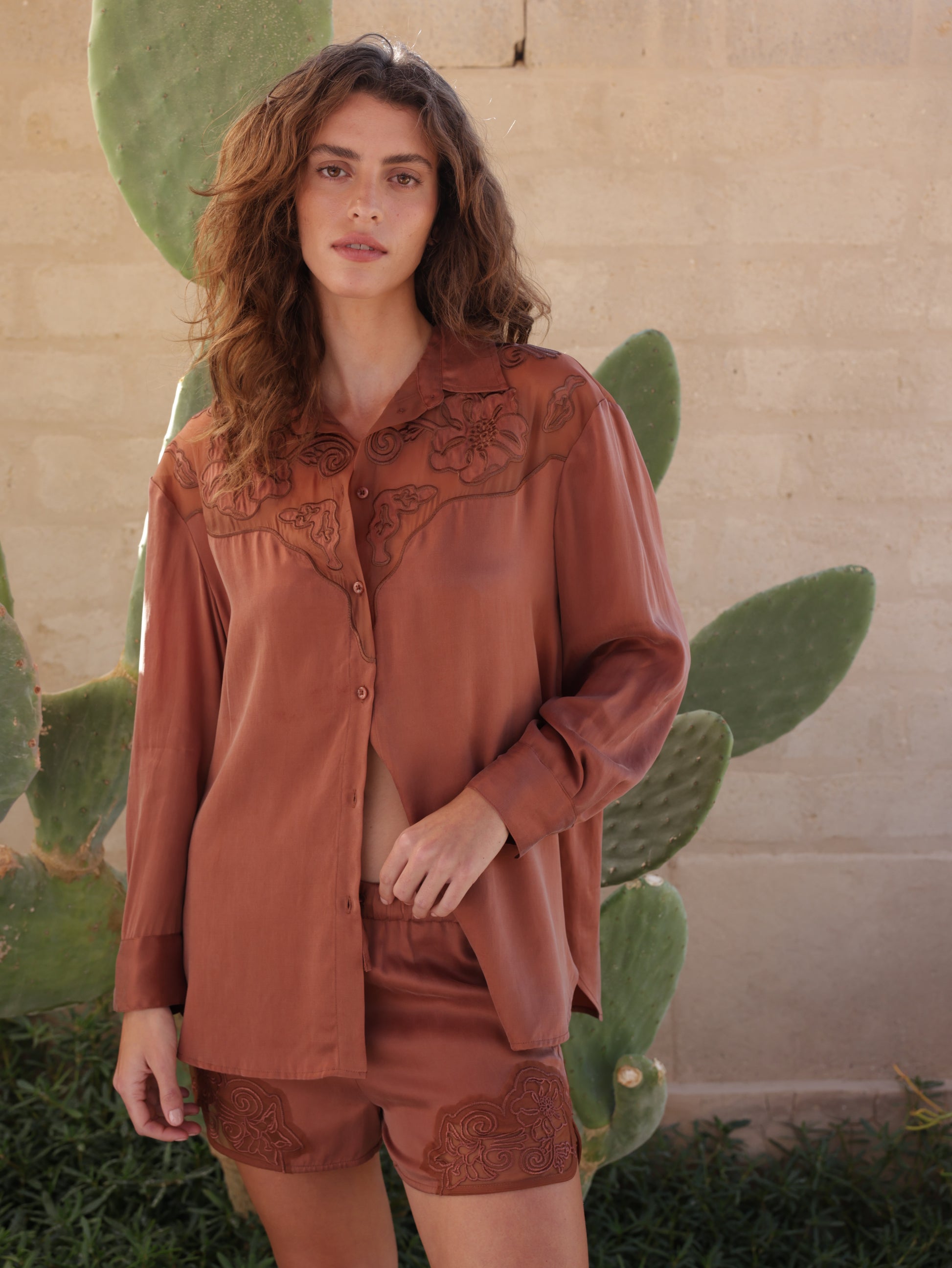 מכנסי קופרו קצרים רקומים