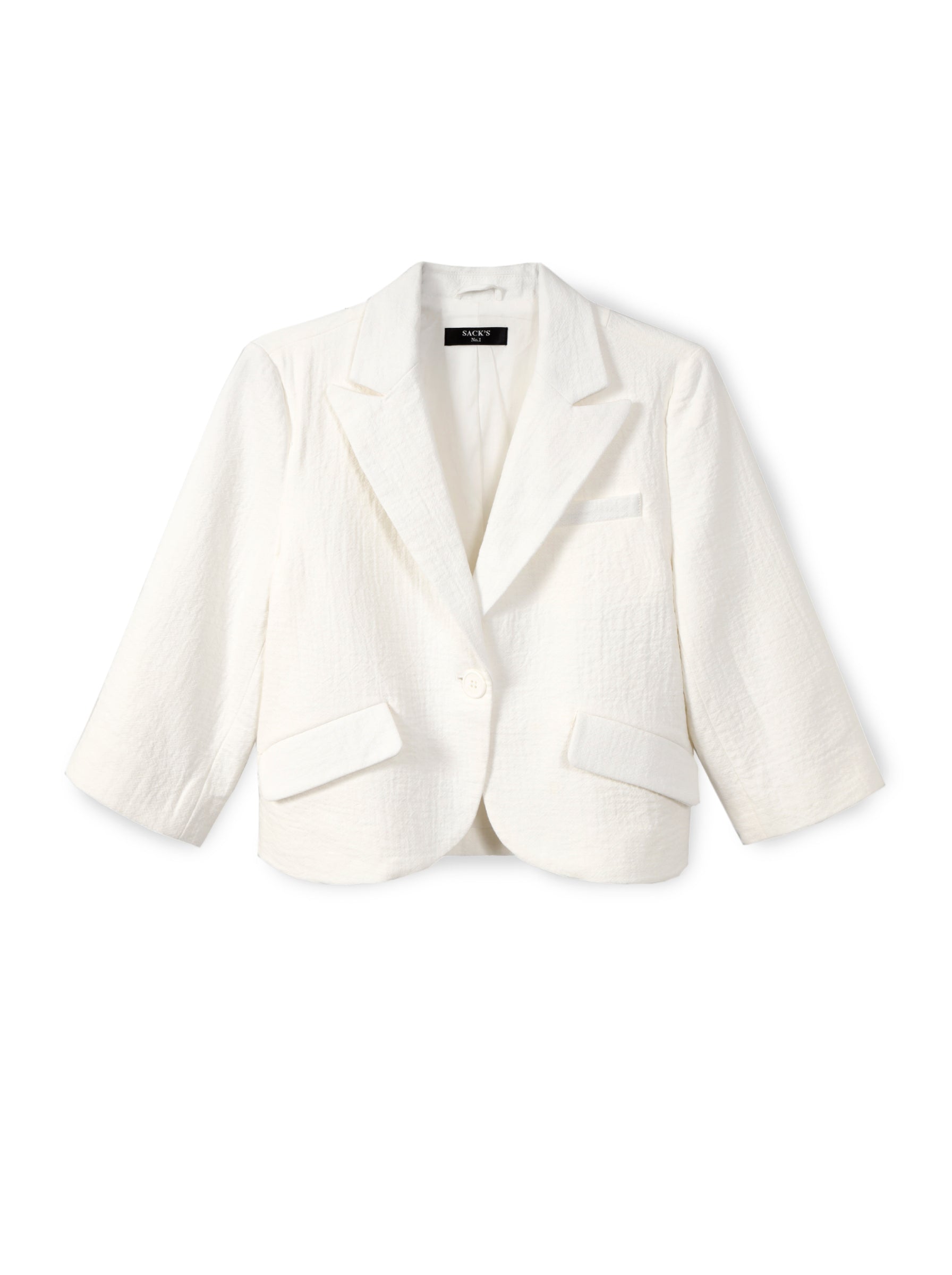 בלייזר קרופ מחויט בעיצוב מודרני. דש קלאסי, סגירת כפתור אחת וקווים נקיים יוצרים סילואט מחמיא. גזרה מעט רפויה לשכבות נוחות. משתלב עם מכנסיים תואמים, חצאיות או ג’ינס. זמין בלבן ובשחור.
