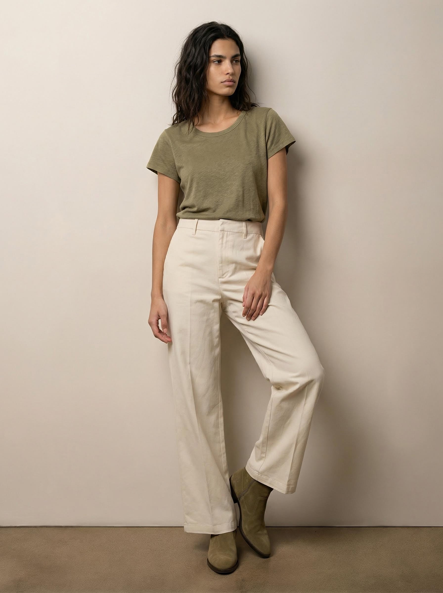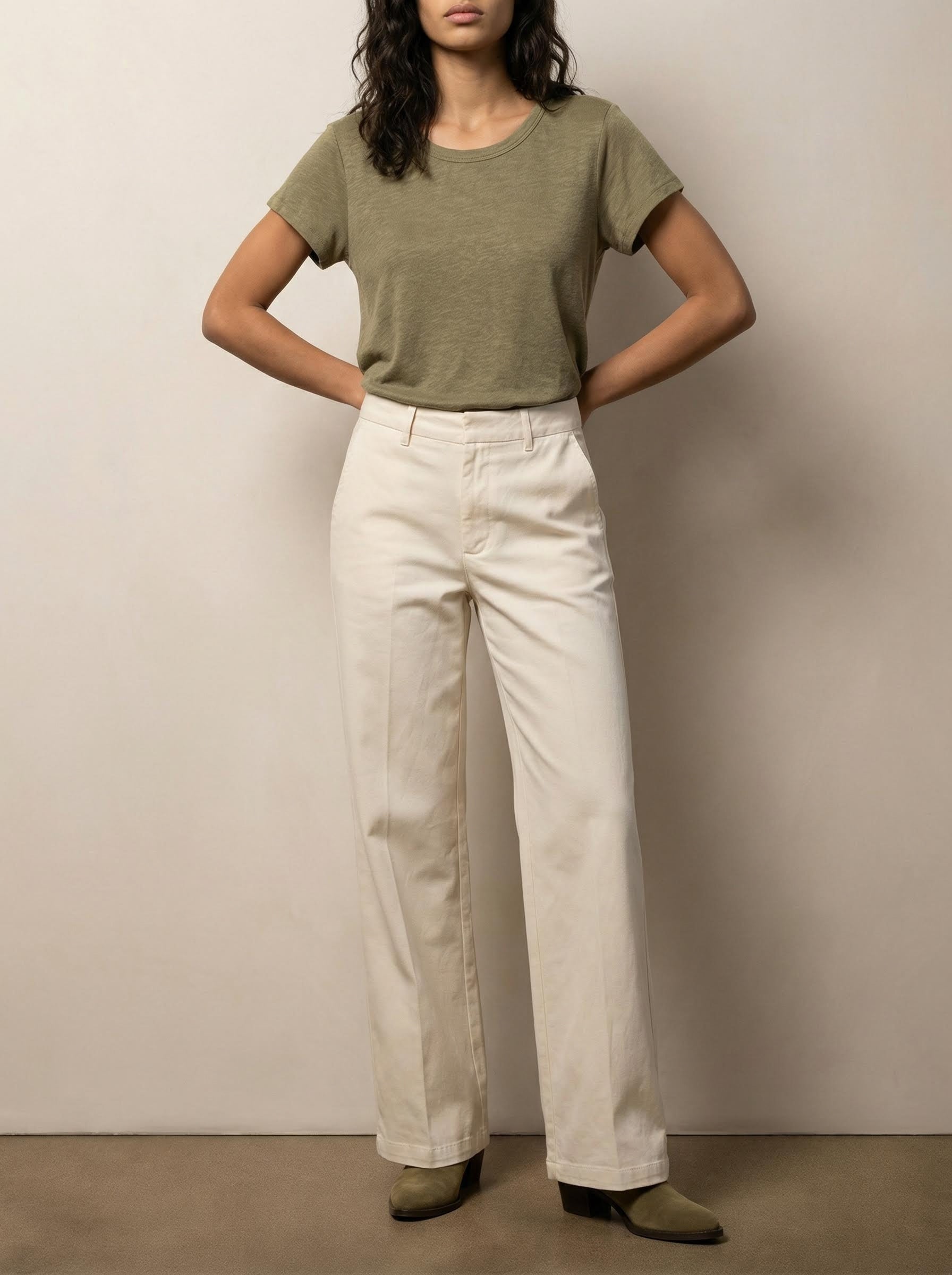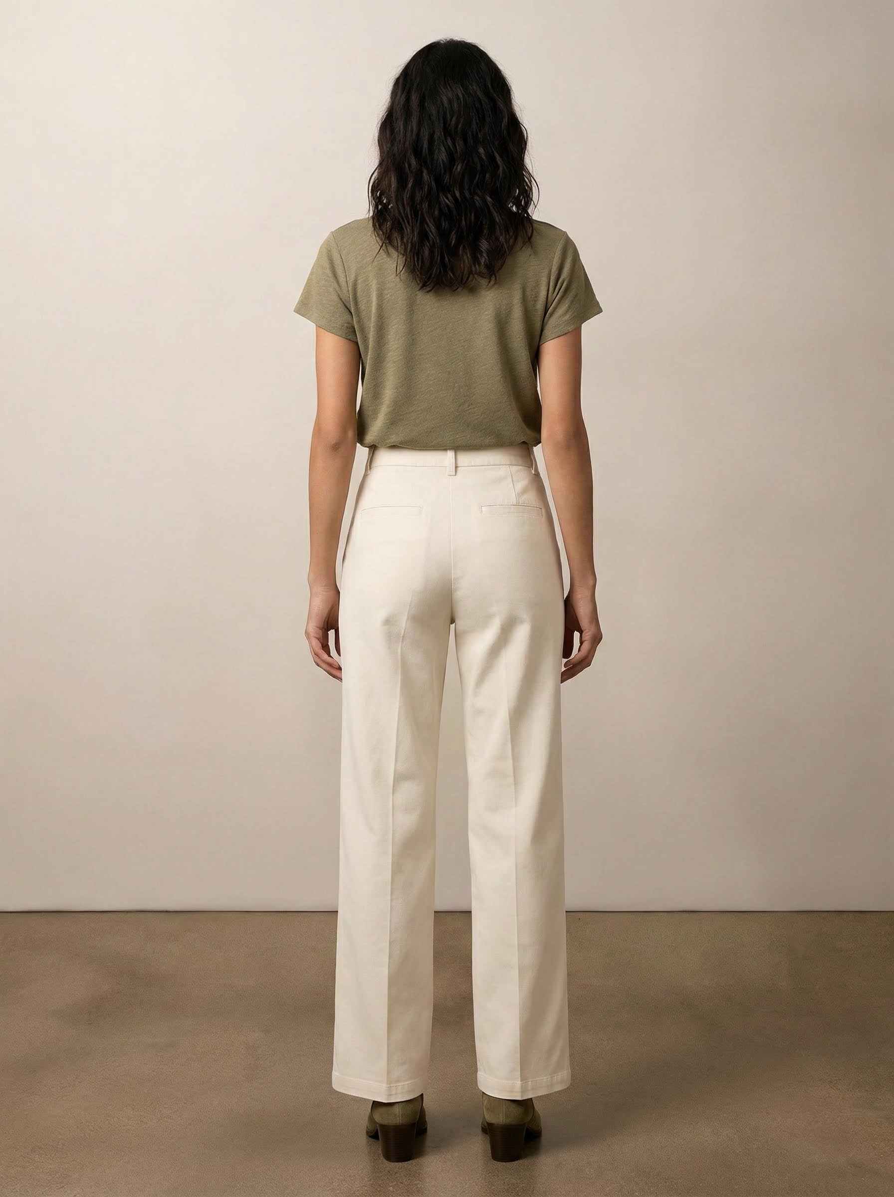 מכנסיים בגזרה ישרה עם מראה מחויט ועל-זמני. מותן מובנית, רגל רחבה ונפילה רכה ליצירת סילואט אלגנטי ונוח. כיסי פס מאחור משלימים מראה נקי. זמינים בנטורל, נייבי ושחור.