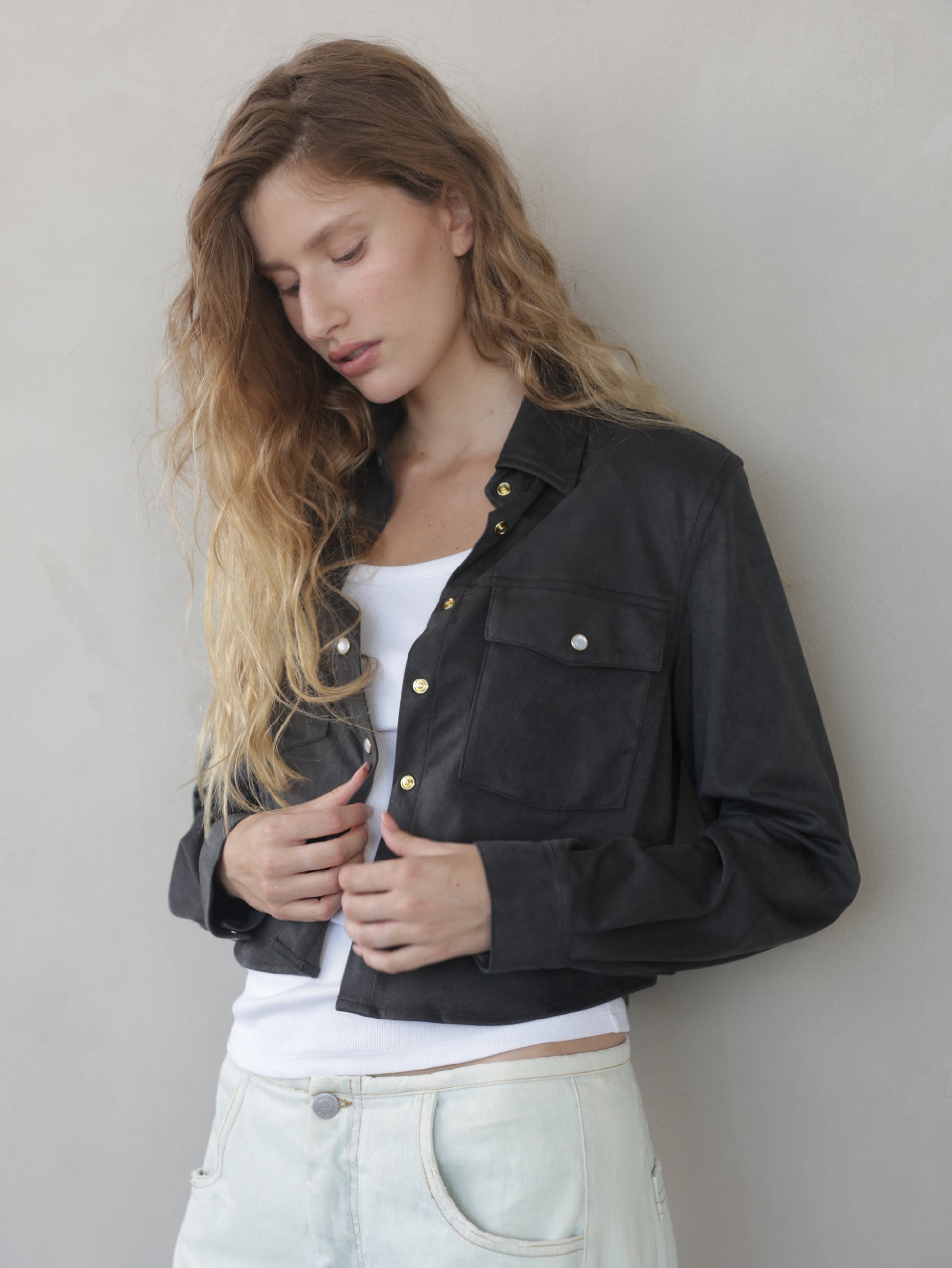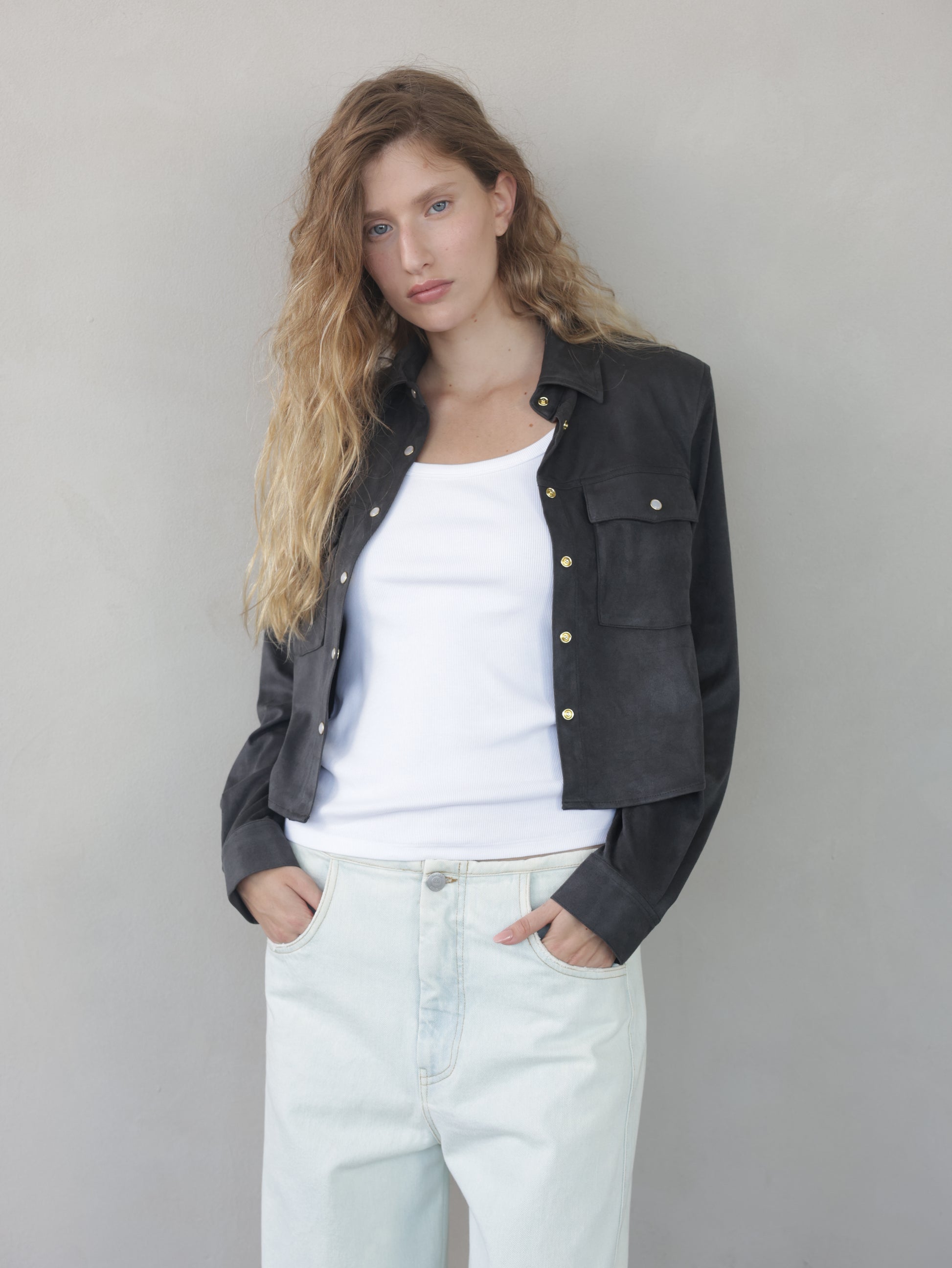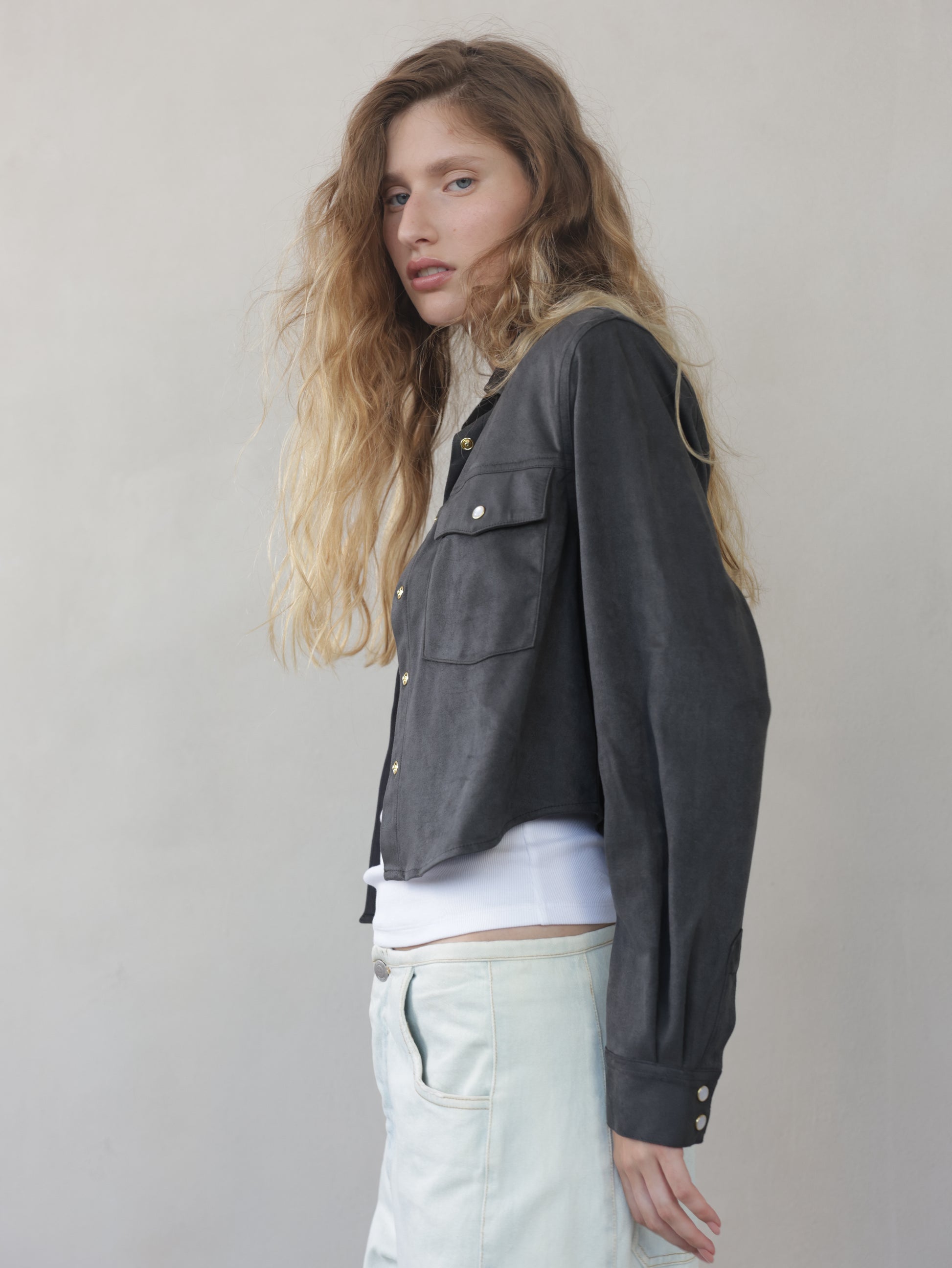 חולצה מכופתרת עם שרוולים ארוכים, צווארון וחפתים. שני כיסים מכופתרים בחזה. קו המכפלת מעוגל. זמינה בצבע שוקולד או פחם, במידות 0-4. שלבי אותה עם המכנסיים שלנו ללוק נוח וקליל.