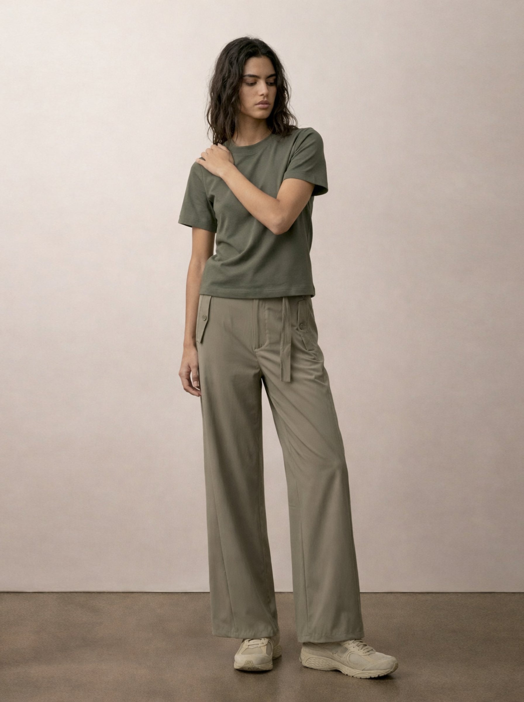 טי שירט כותנה קלאסית עם שרוולים קצרים וגזרה נינוחה. צווארון עגול נקי ומראה על־זמני שמתאים לכל מלתחה. בד רך ונעים למגע, אידיאלי ללבישה יומיומית. משתלבת בקלות לבד או מתחת לז’קט וסריג. זמינה בלבן מלא, שחור מלא, חול וזית.