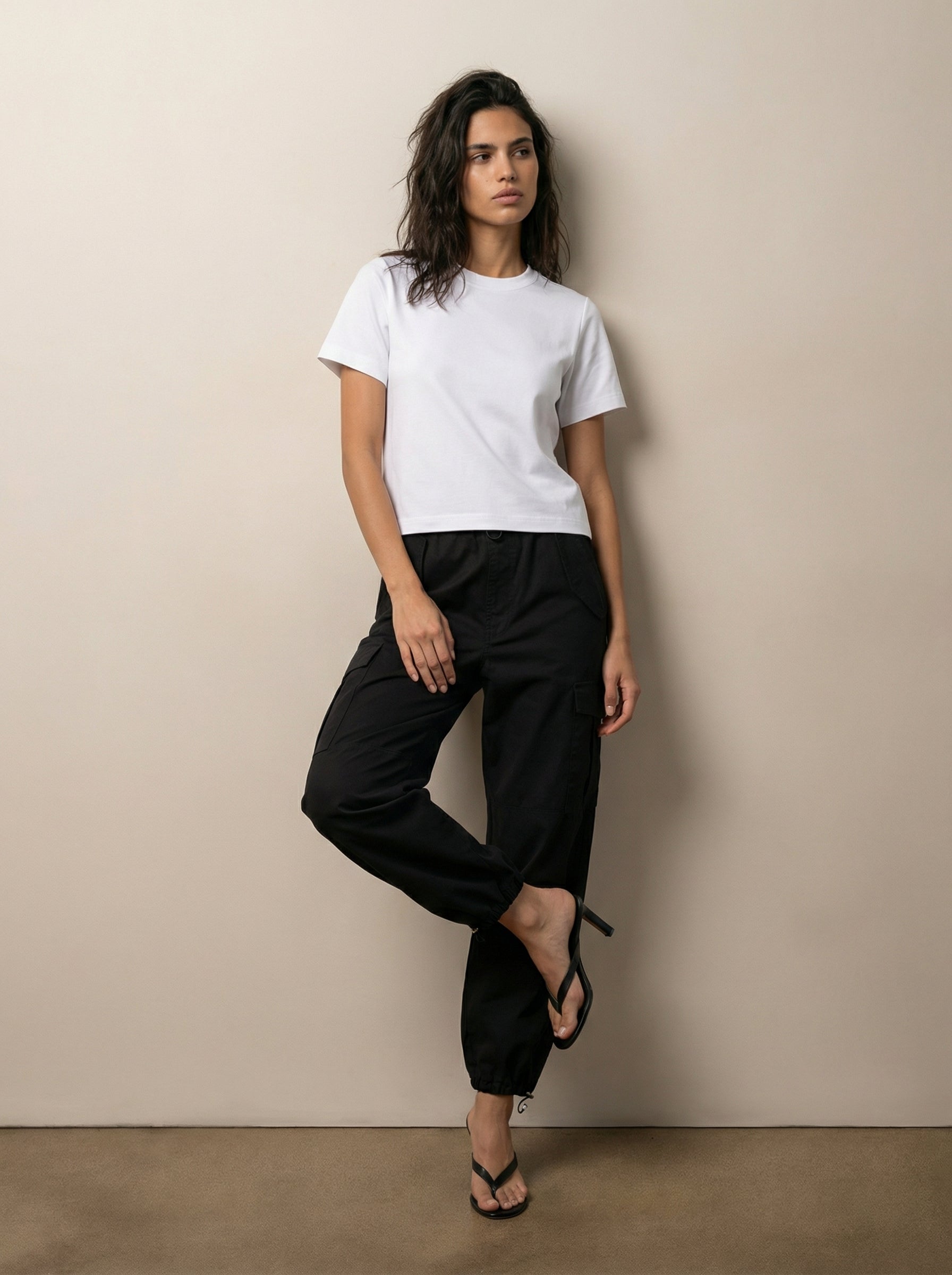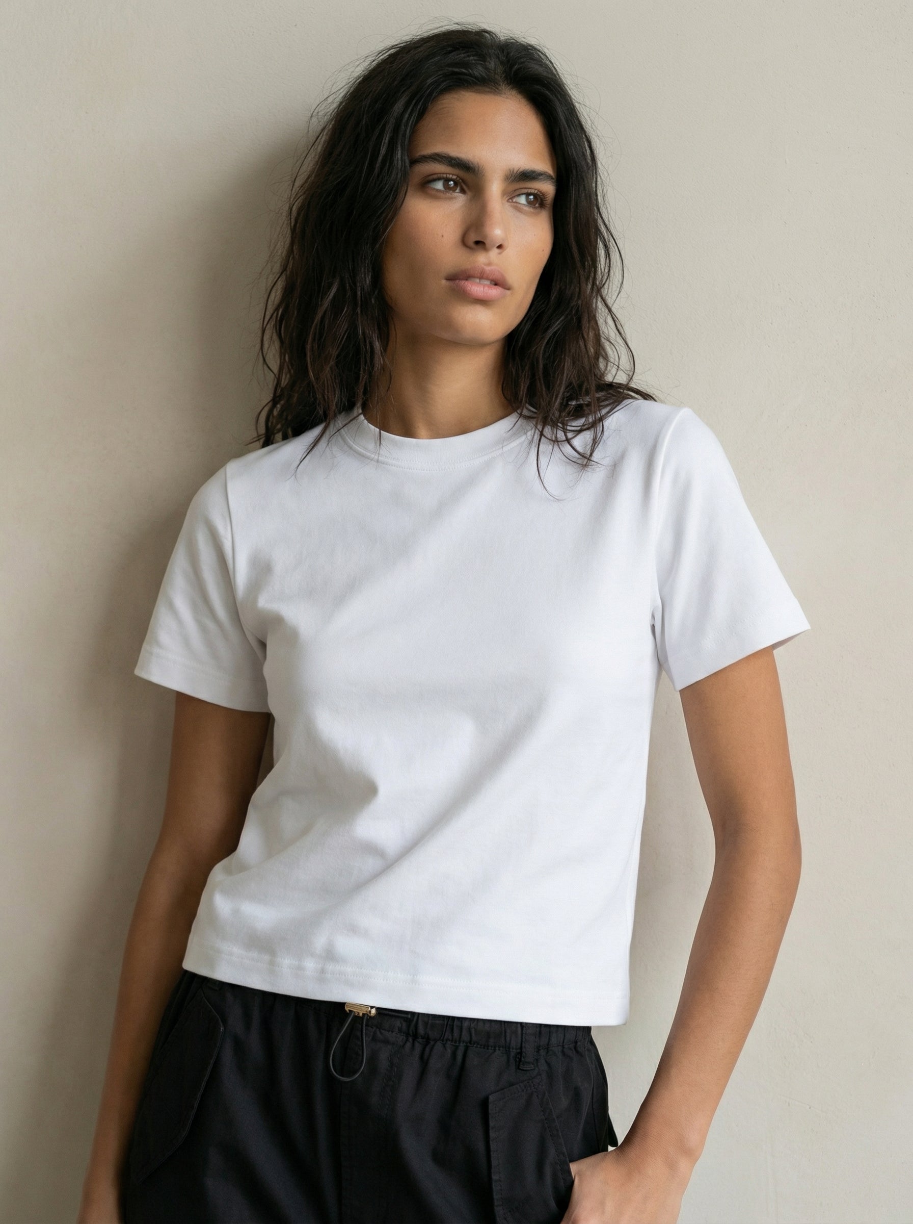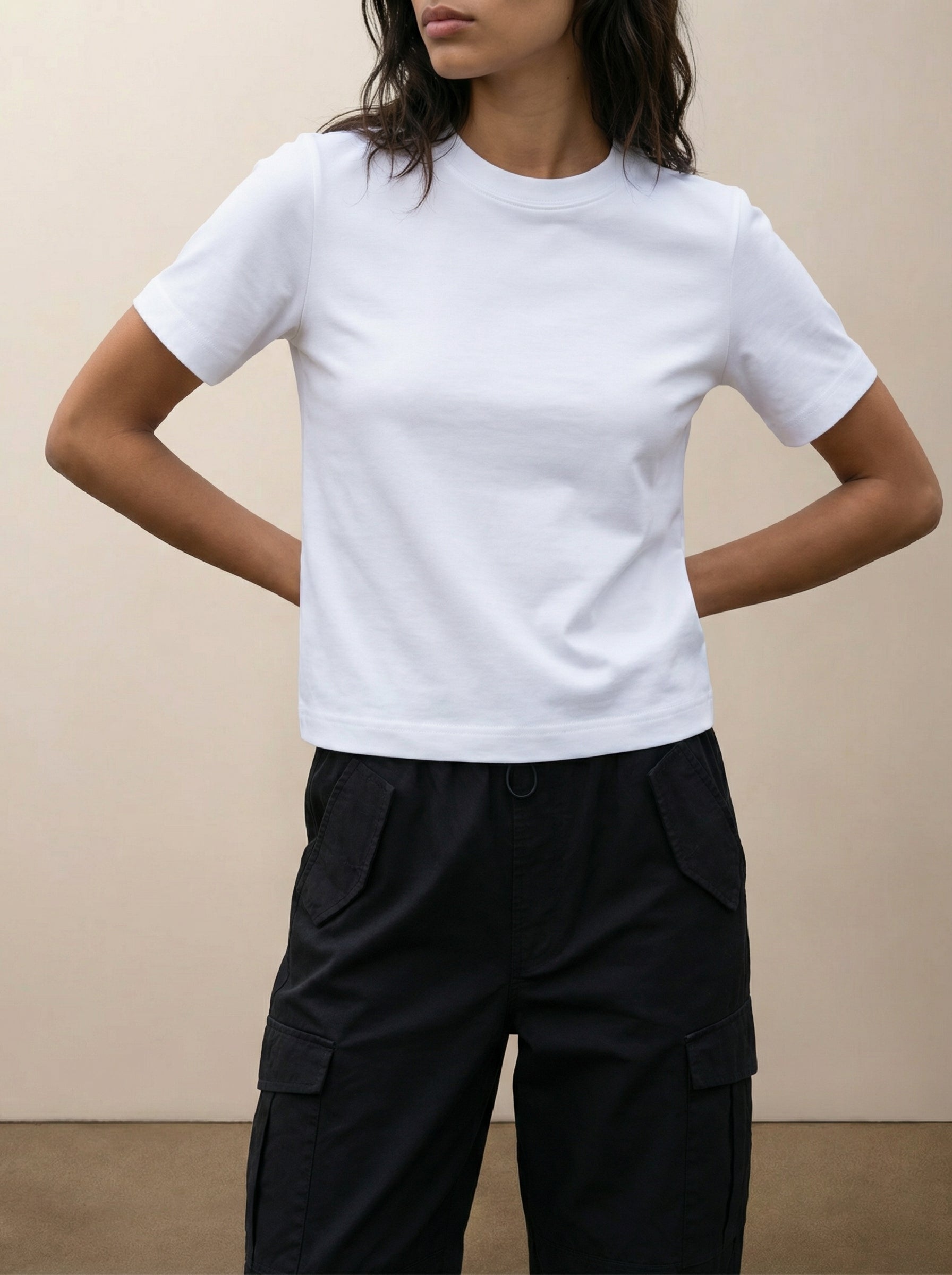 טי שירט כותנה קלאסית עם שרוולים קצרים וגזרה נינוחה. צווארון עגול נקי ומראה על־זמני שמתאים לכל מלתחה. בד רך ונעים למגע, אידיאלי ללבישה יומיומית. משתלבת בקלות לבד או מתחת לז’קט וסריג. זמינה בלבן מלא, שחור מלא, חול וזית.
