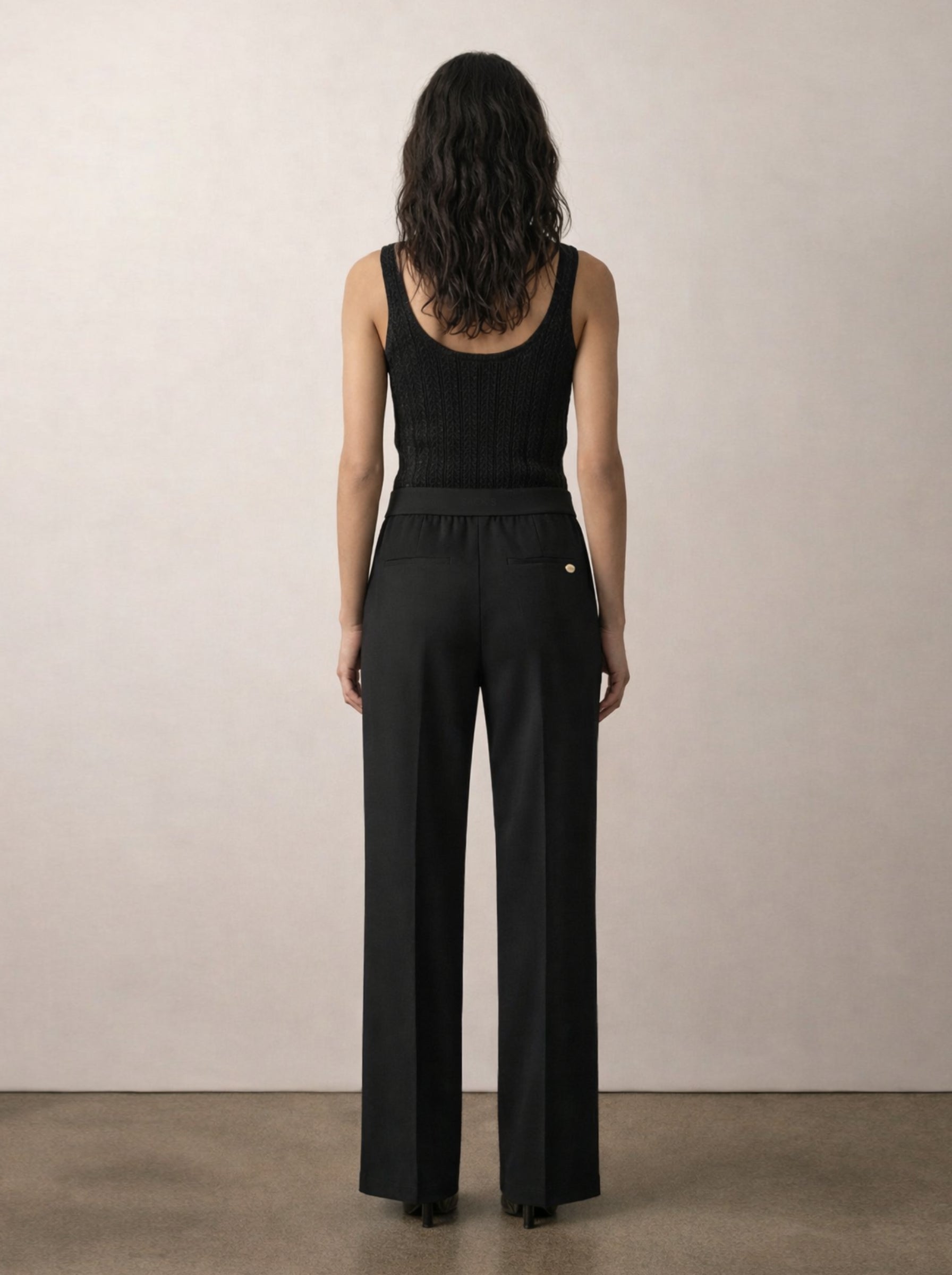 מכנסיים רחבים ונשפכים בעיצוב שמדגיש נוחות עם גימור מוקפד. מותן אלסטית ללבישה קלה, תוך שמירה על מראה מחויט ונקי. רגל ישרה וזורמת שיוצרת סילואט מחמיא לאורך כל היום. קלים ורב-שימושיים, מתאימים ללבוש יומיומי או אלגנטי. מושלמים עם חולצה תחובה או סריג רפוי. זמינים בשחור, חום וקרם.