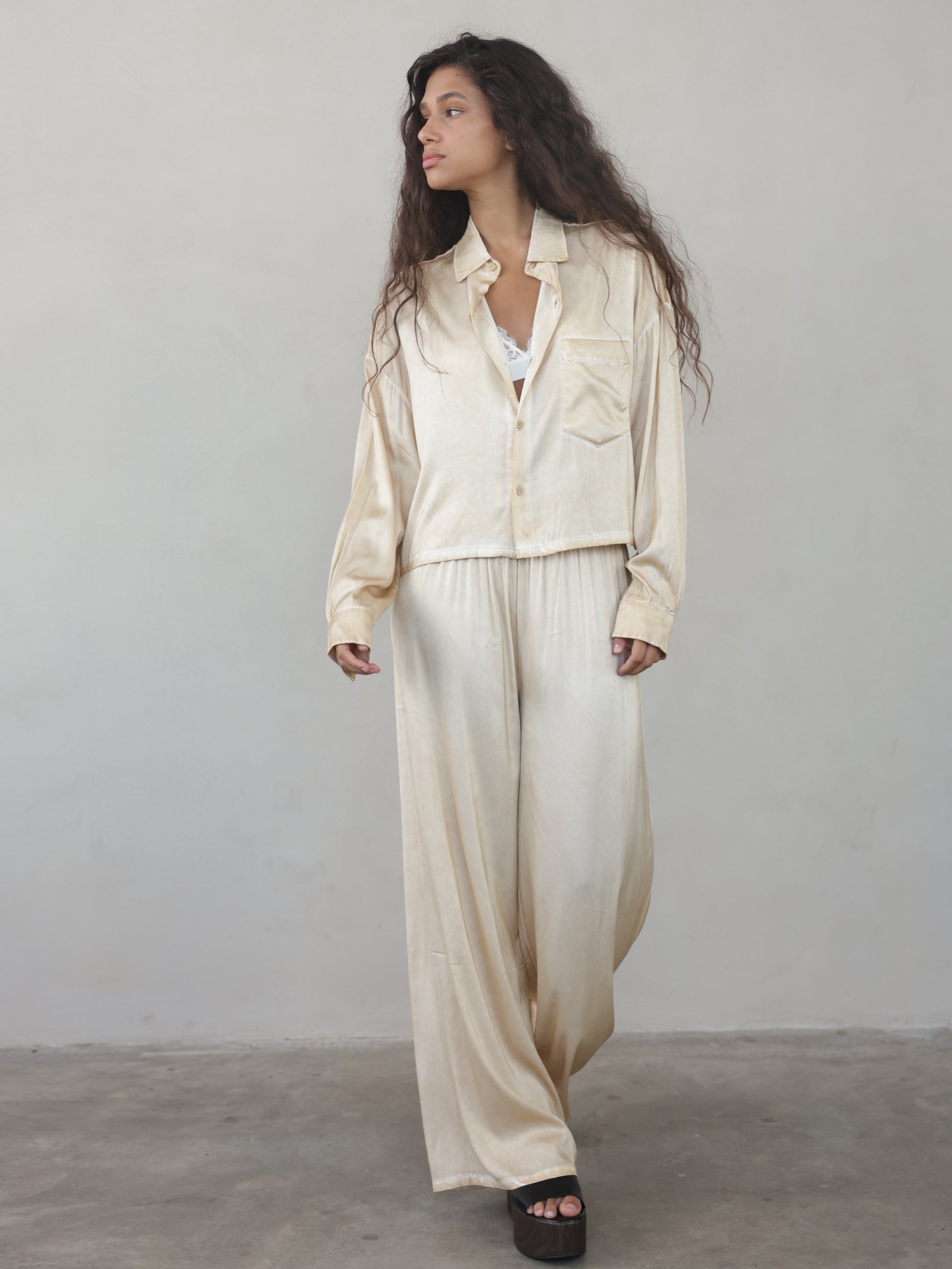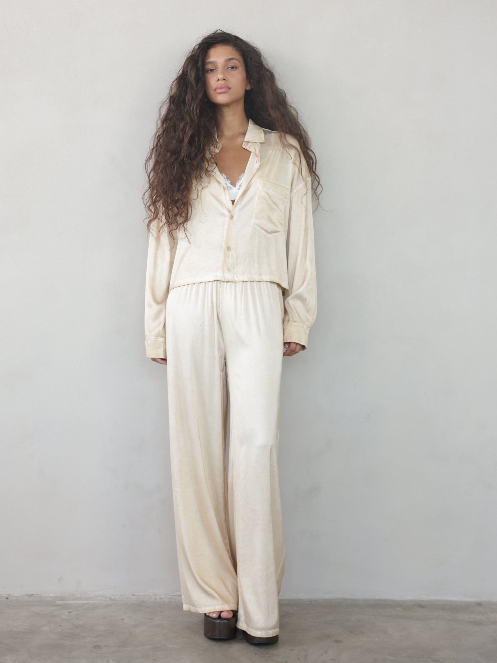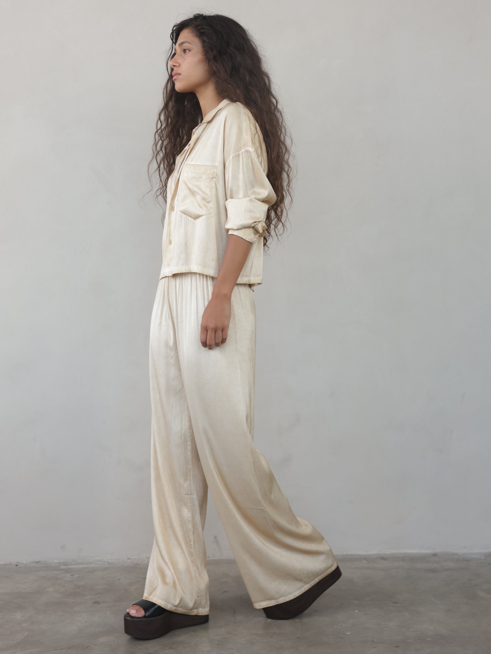 מכנסי פעמון במראה וינטג' עם מותן אלסטית. זמינים בגווני נטורל, ורוד או חאקי. זמינים במידות: Y–4. שלבי עם הגופייה התואמת שלנו למראה נשי ורטרו.