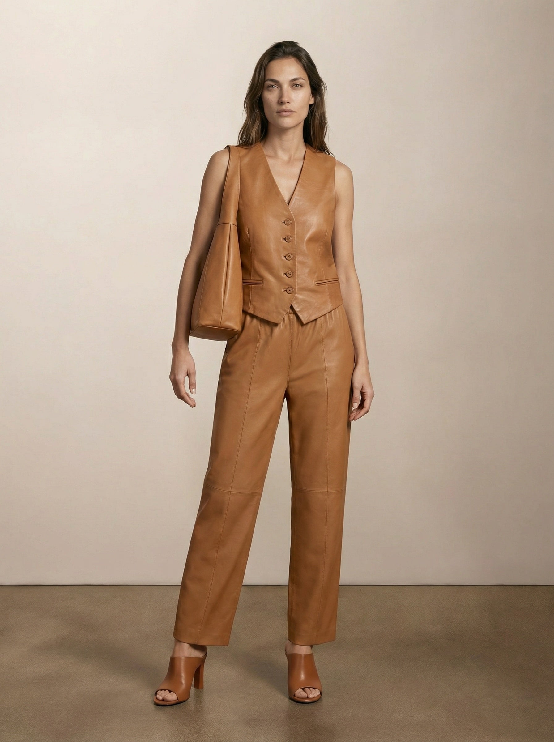 מכנסי עור רחבים עם נוכחות בולטת וקו מודרני מוקפד. מעוצבים עם מותן אלסטית לנוחות וללבישה קלה, וגזרה רפויה הנשפכת בתנועה טבעית תוך שמירה על מראה מובנה ואלגנטי. פרטי חיתוך בפאנלים מוסיפים עומק וטוויסט אופנתי עכשווי, והופכים אותם לפריט סטייטמנט. מושלמים לשילוב עם טופים צמודים או סריגים בשכבות ליצירת איזון מדויק. זמינים בשחור, זית, נטורל ופקאן למגוון אפשרויות סטייל עשירות.