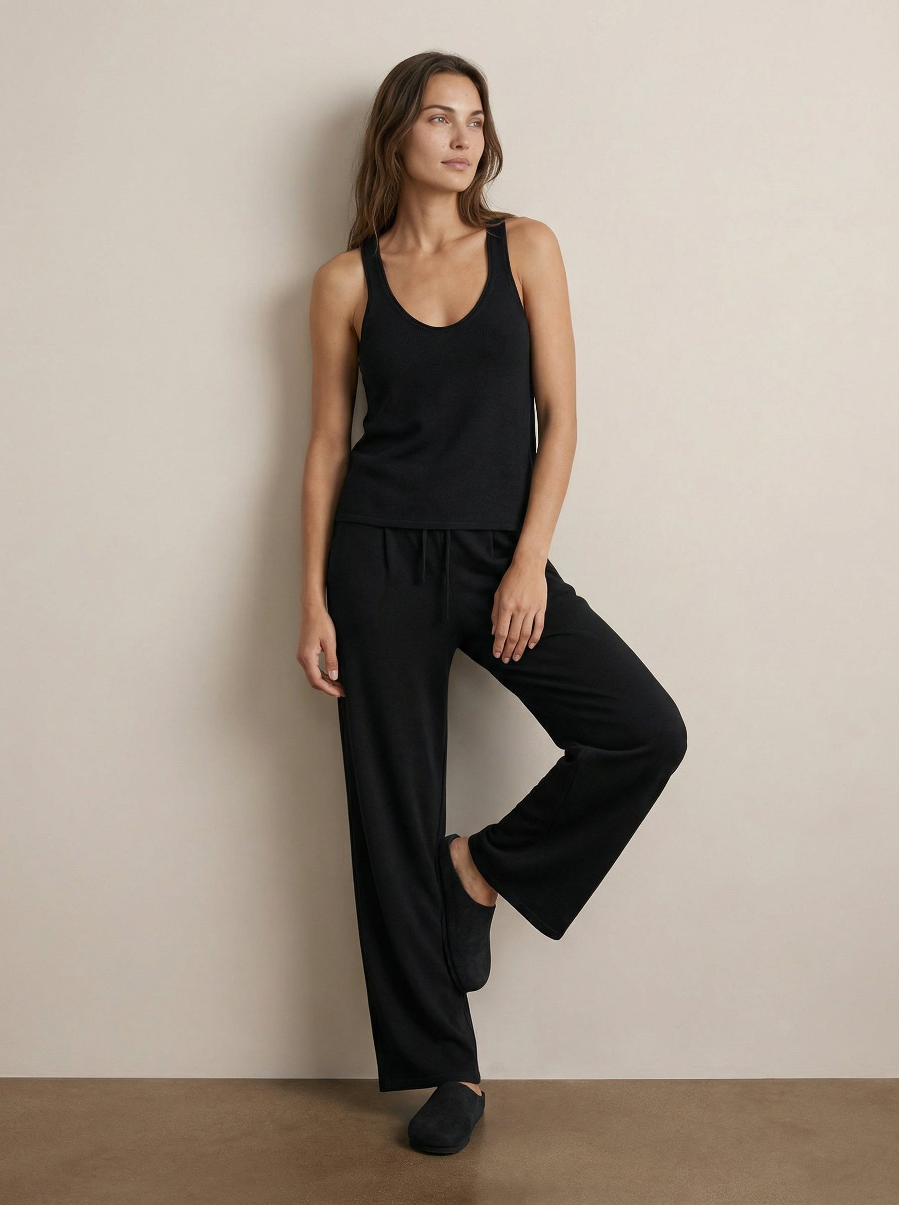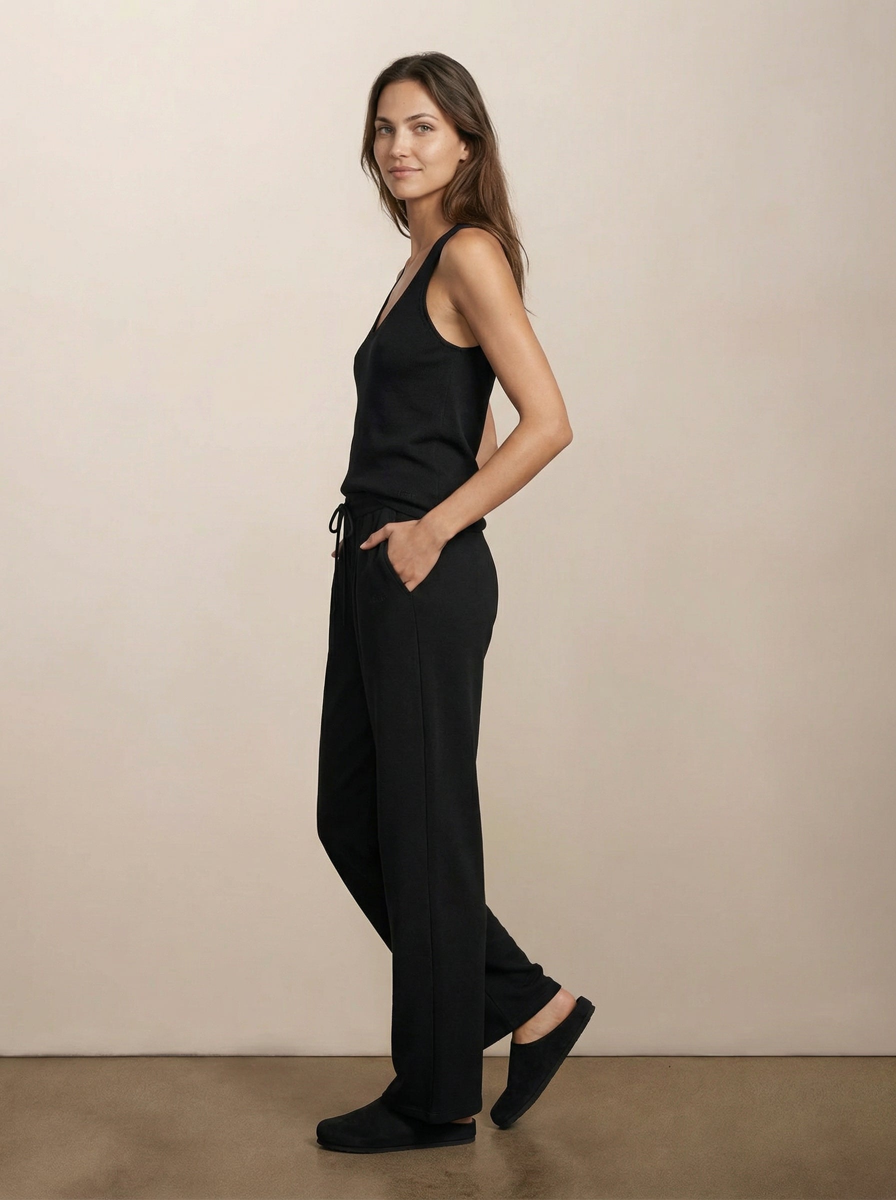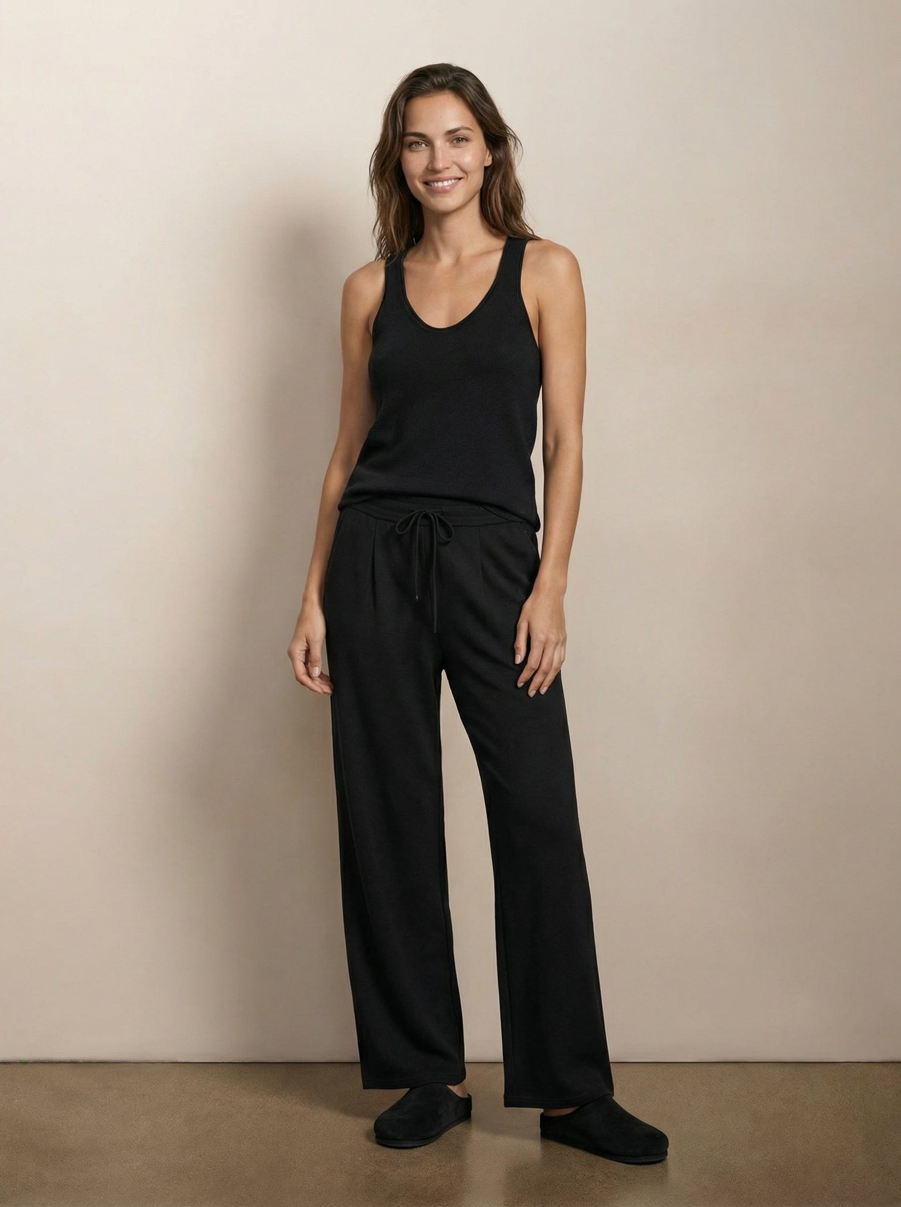מכנסיים רחבים ונינוחים עם מראה נקי ומודרני. מותן אלסטית עם שרוך מתכוונן מעניקה התאמה קלה ונוחה. הגזרה הישרה והנשפכת יוצרת מראה מוקפד אך נינוח, מושלם ללאונג’, נסיעות או קז’ואל משודרג. פריט ורסטילי שמשתלב בקלות עם טי שירט, גופייה או טופ תואם.