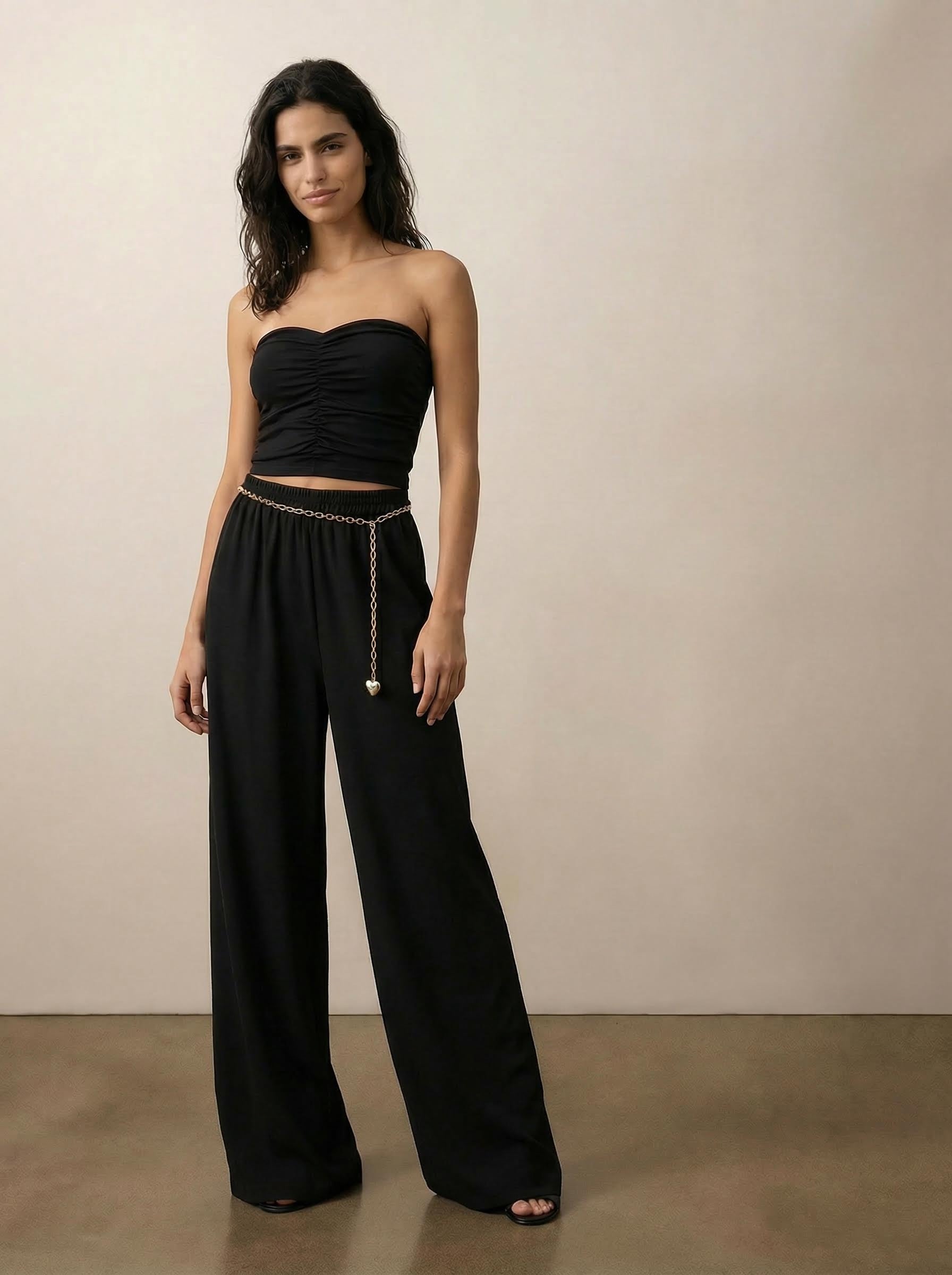 מכנסיים רחבים ונשפכים עם מראה אלגנטי וזורם. מותן אלסטית וגזרה רפויה מעניקים נוחות מקסימלית עם נפילה מחמיאה. בד קליל יוצר תנועה רכה שמתאימה למראה יומיומי או ערב. נראים נהדר בפני עצמם או כסט עם הקורסט התואם. זמינים בשחור ובמולטי פרינט.