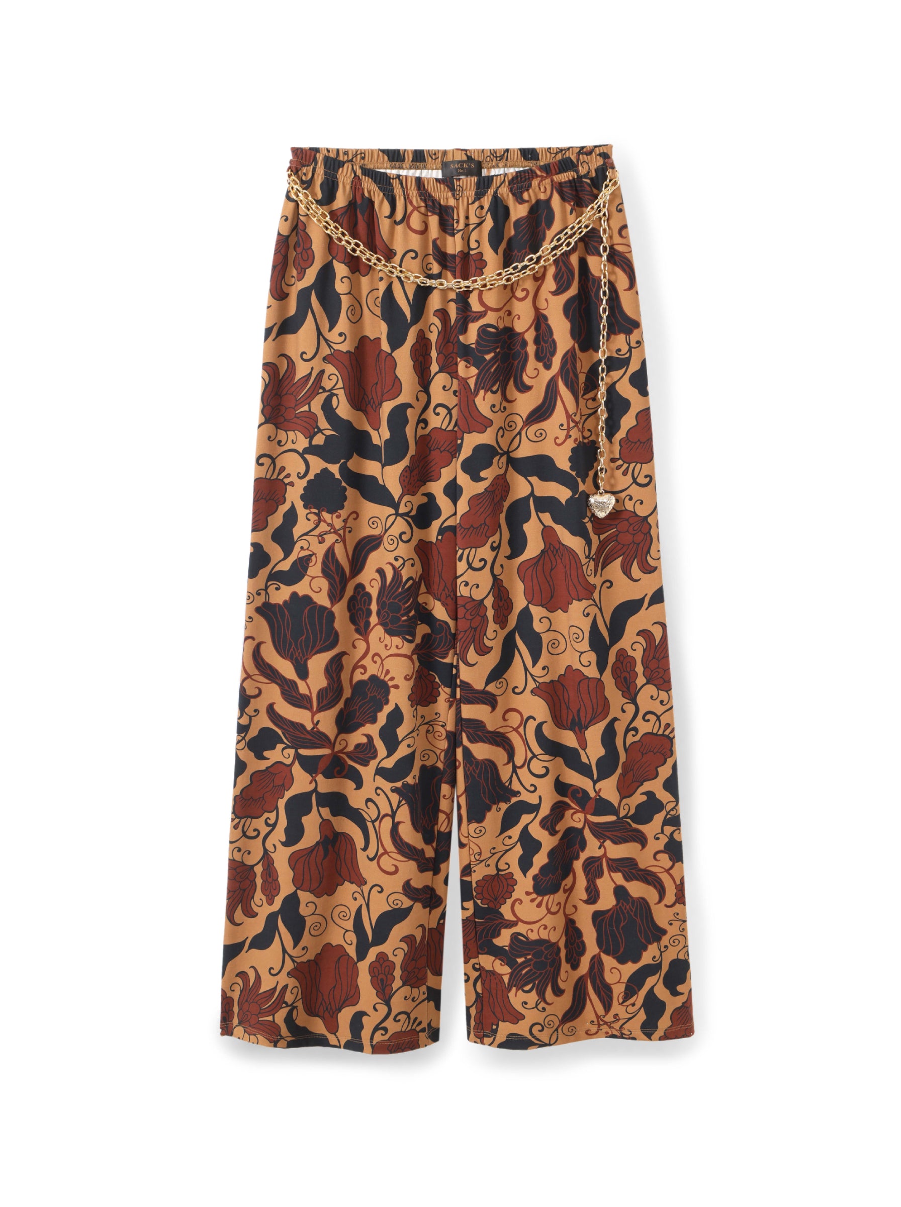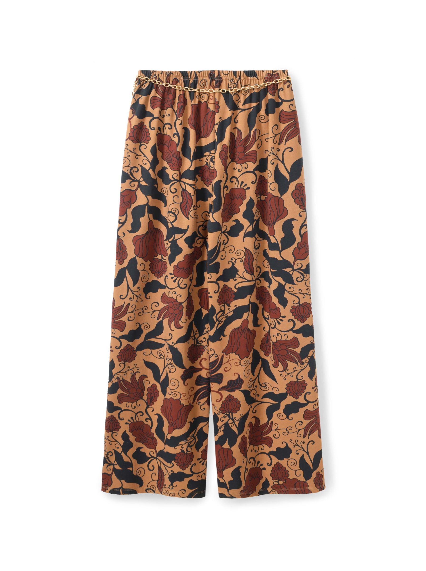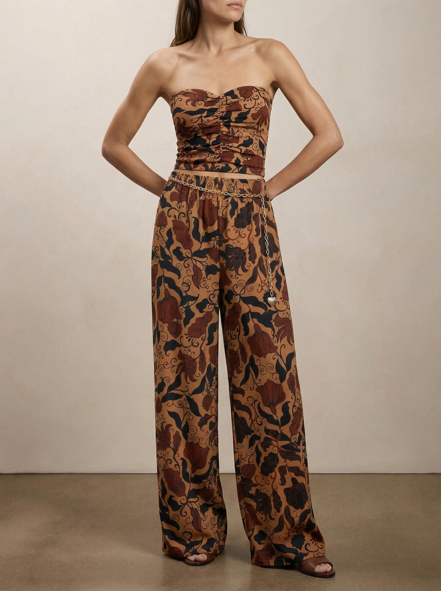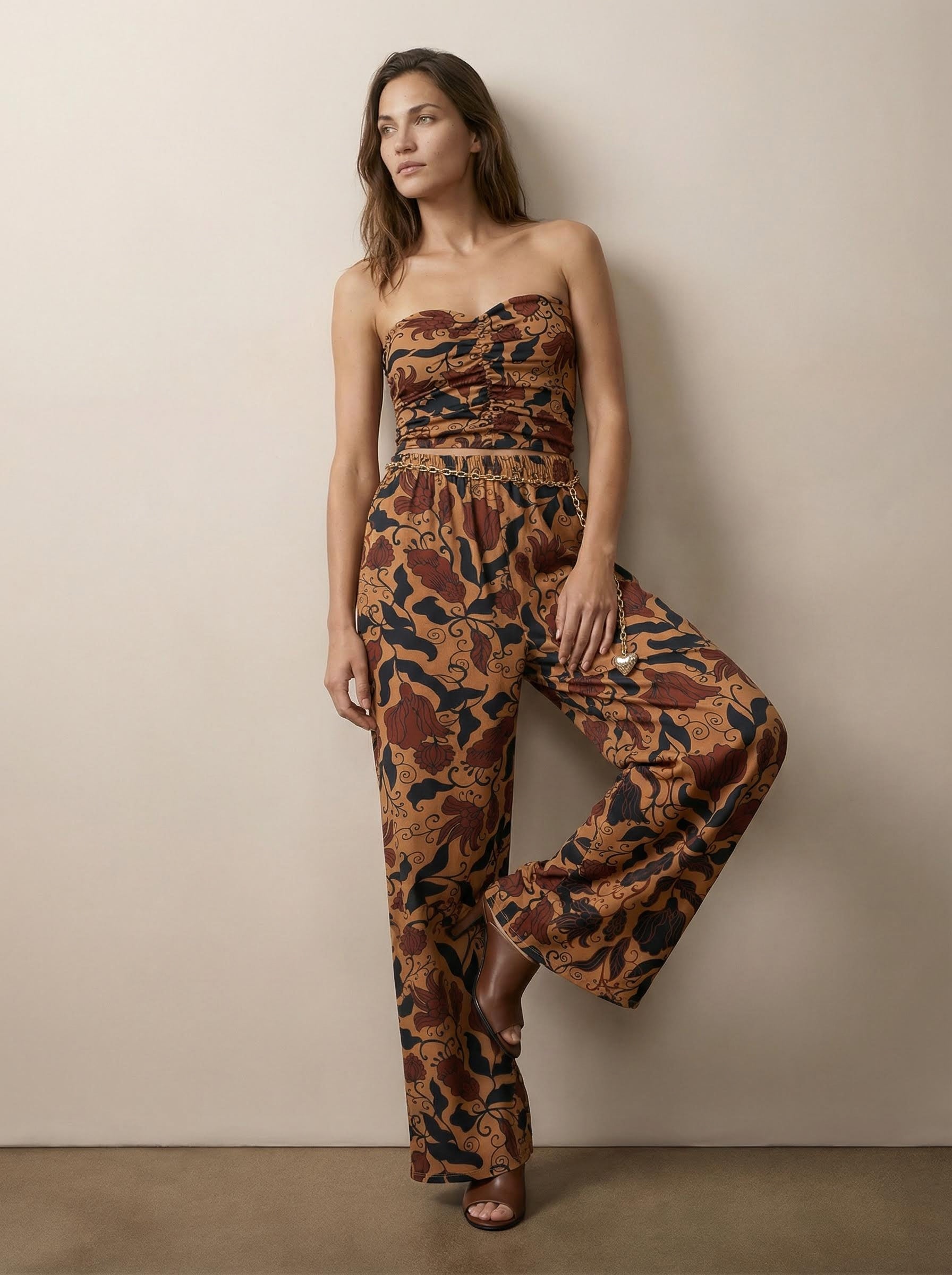 מכנסיים רחבים ונשפכים עם מראה אלגנטי וזורם. מותן אלסטית וגזרה רפויה מעניקים נוחות מקסימלית עם נפילה מחמיאה. בד קליל יוצר תנועה רכה שמתאימה למראה יומיומי או ערב. נראים נהדר בפני עצמם או כסט עם הקורסט התואם. זמינים בשחור ובמולטי פרינט.