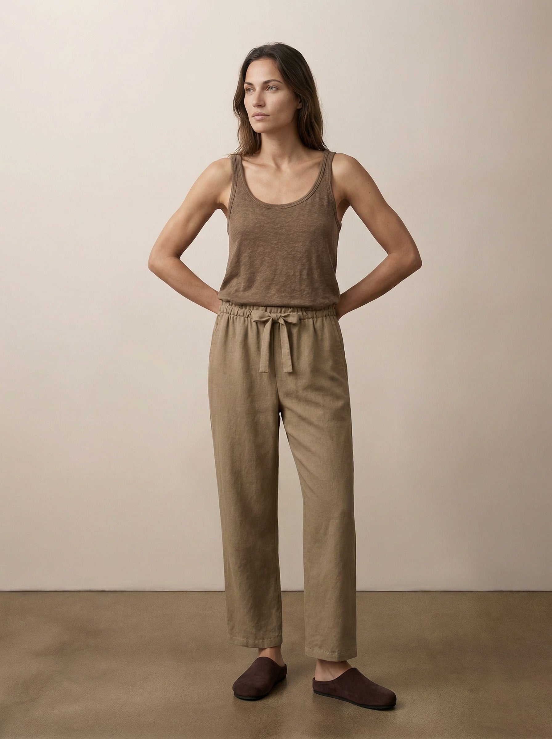 מכנסיים רחבים ונינוחים מבד טנסל, בעיצוב נוח עם סילואט נקי ומודרני. כוללים מותן אלסטית עם שרוך מתכוונן וכיסים קדמיים פונקציונליים, להתאמה מחמיאה וללבישה לאורך כל היום. גזרת רגל ישרה יוצרת מראה מוקפד המתאים הן לסטייל קז’ואלי והן ללוק אלגנטי יותר. קלים ורב־שימושיים, מתאימים ללבישה בפני עצמם או כסט מתואם. זמינים בלבן מלא, סנד ופחם, ומשתלבים באופן מושלם עם הטופ התואם ללוק שלם ונקי.