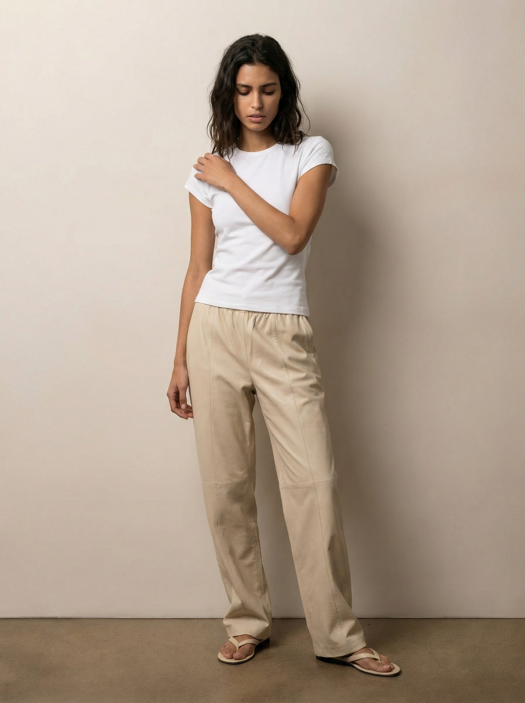 Clean, cool, and endlessly wearable — this modern cap-sleeve tee is the ultimate everyday essential. Designed with a classic crew neckline and subtle contrast trim for a fresh, elevated touch. The fitted yet comfortable silhouette makes it perfect for layering or wearing solo. Minimal, chic, and easy to style from casual days to polished looks. Pair it with denim, tailored pants, or skirts for effortless versatility. A must-have basic with a fashion-forward twist. Colors available: Sand, Olive (two tones), Full White, Full Black.