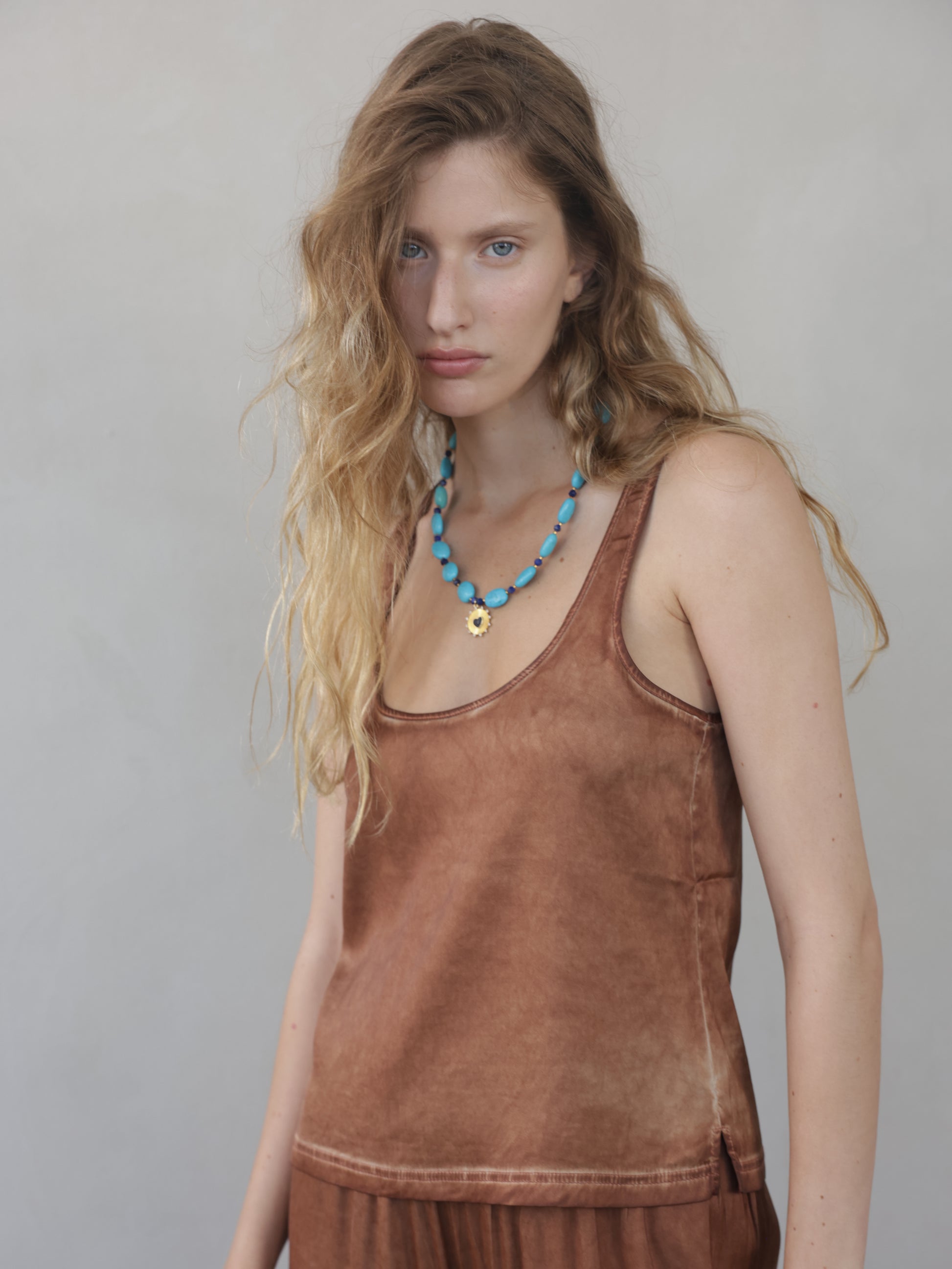 Vintage Wash Tank Top - Round neck, racer back tank. Available in natural, pink or khaki. available sizes 0-4. Pair with our matching pants for a feminine, retro look.